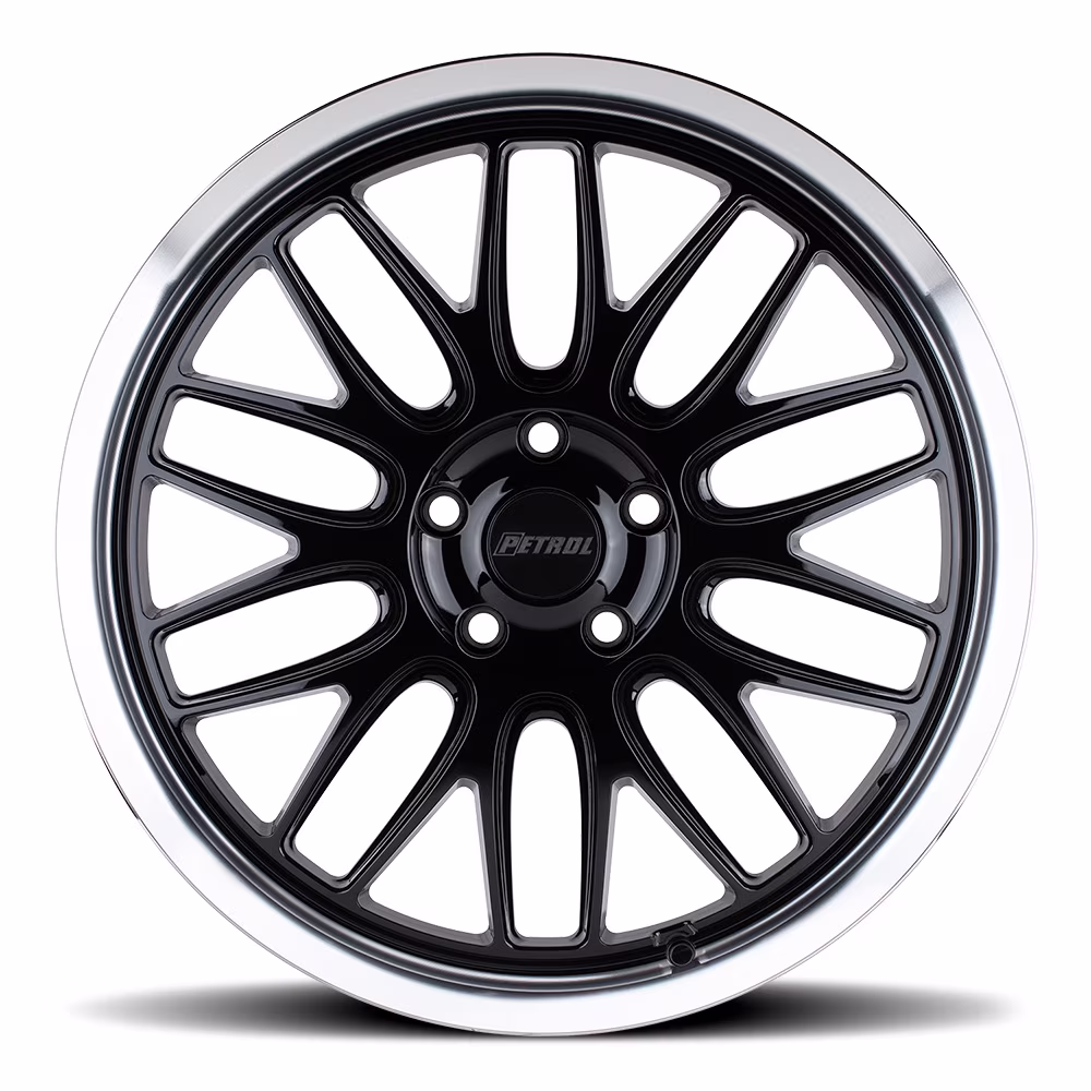 Petrol P4C 16X7 4X100 40Et 72.1Cb Gloss Black W/ Machined Cut Lip Wheel