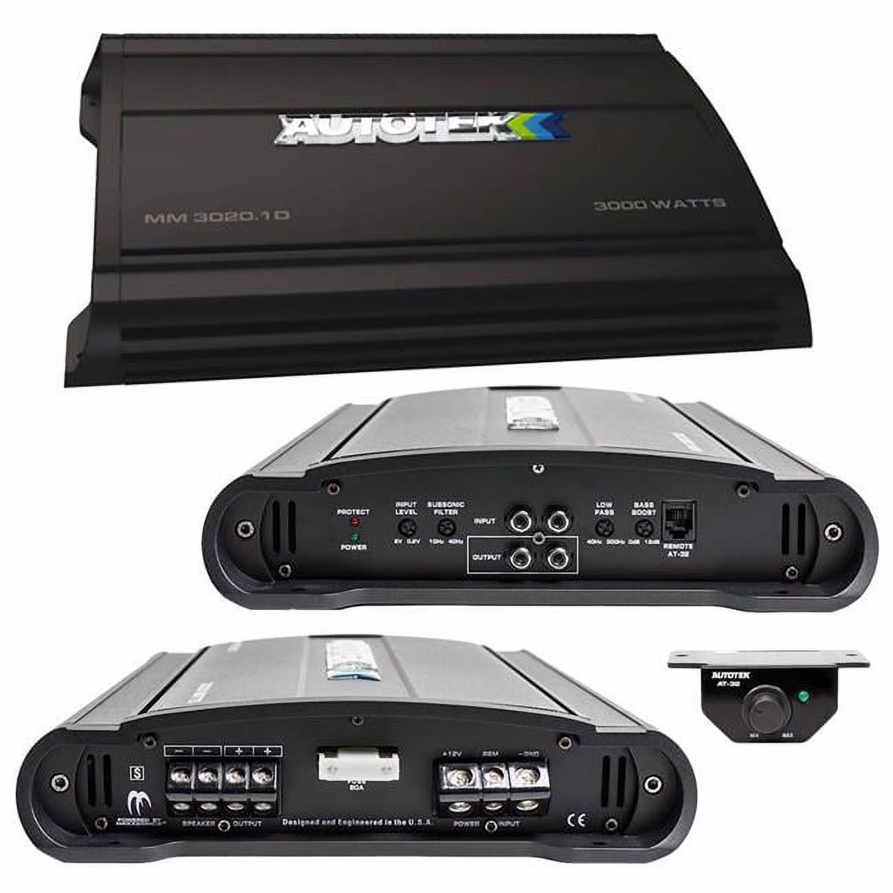 AUTOTEK MM-3020.1D 3000W Max Mean Machine Series 1 ohm Stable Monoblock Class-D Amplifier w/ Bass Knob Included