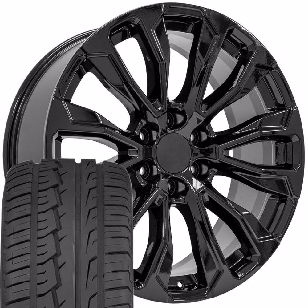 22x9 Wheels Fits GMC Chevy Trucks - Sierra CV98 Black Chrome Rims, Ironman Tires, Lugs, TPMS SET