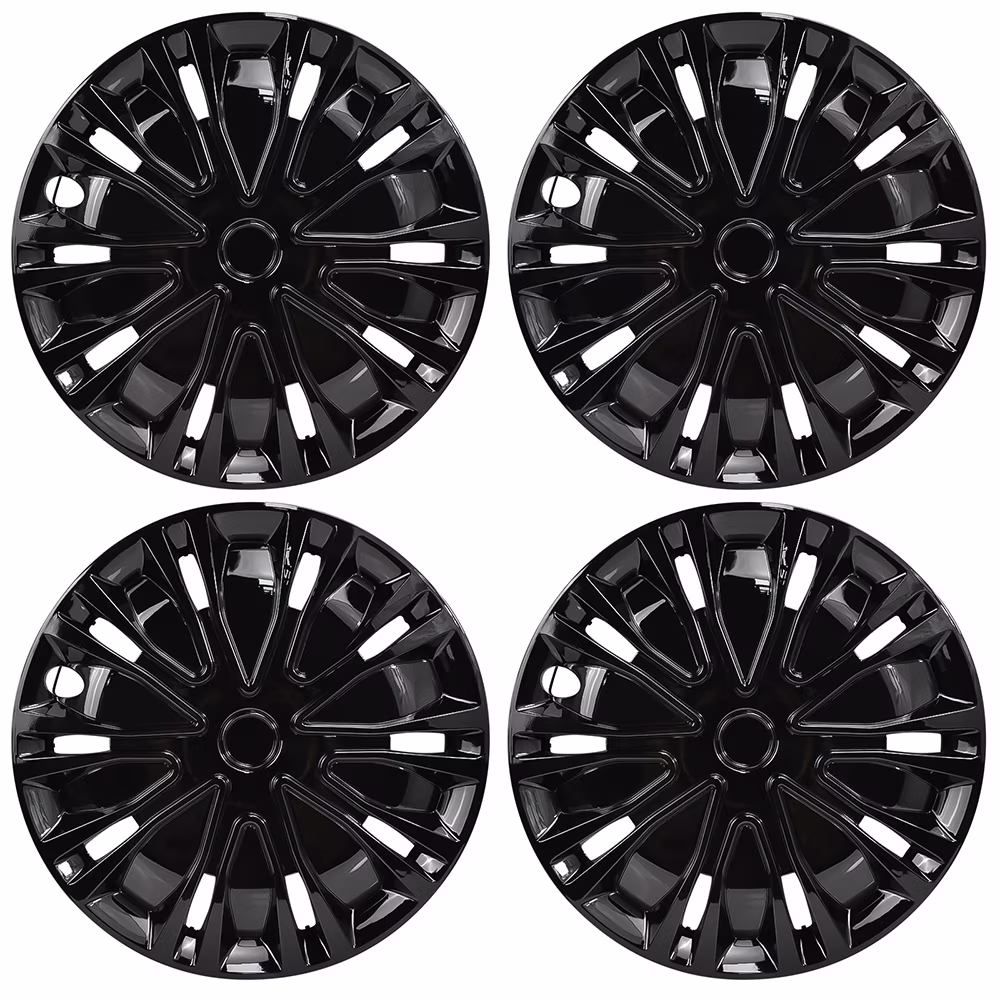 Hex Autoparts 16" Universal Hub Caps Set of 4 Wheel Covers Snap On Full HubCaps fit R16 Tire & Steel Rim All Black Tire Rim Covers