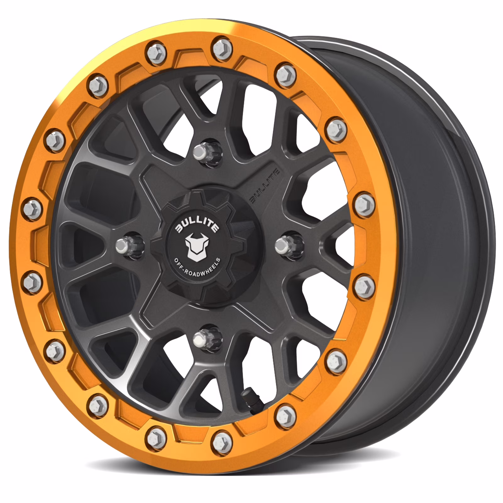 Bullite Wheels BT-05 Rider 15in UTV ATV SXS Beadlock Rims 15x7 Orange, 4x137 Bolt Pattern, 5+2 Offset, Compatible with Can-Am Maverick X3 Commander Renegade Outlander Defender