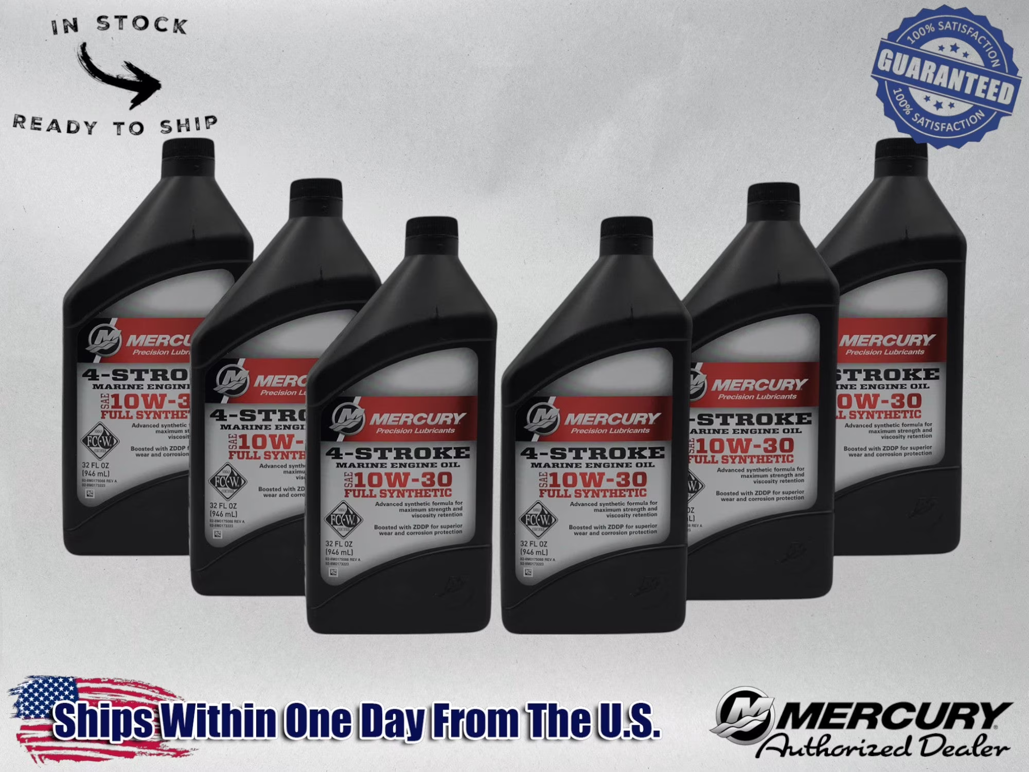 Mercury OEM Full Synthetic 10W30 Marine Oil Quarts 92-8M0173223 6 Pack