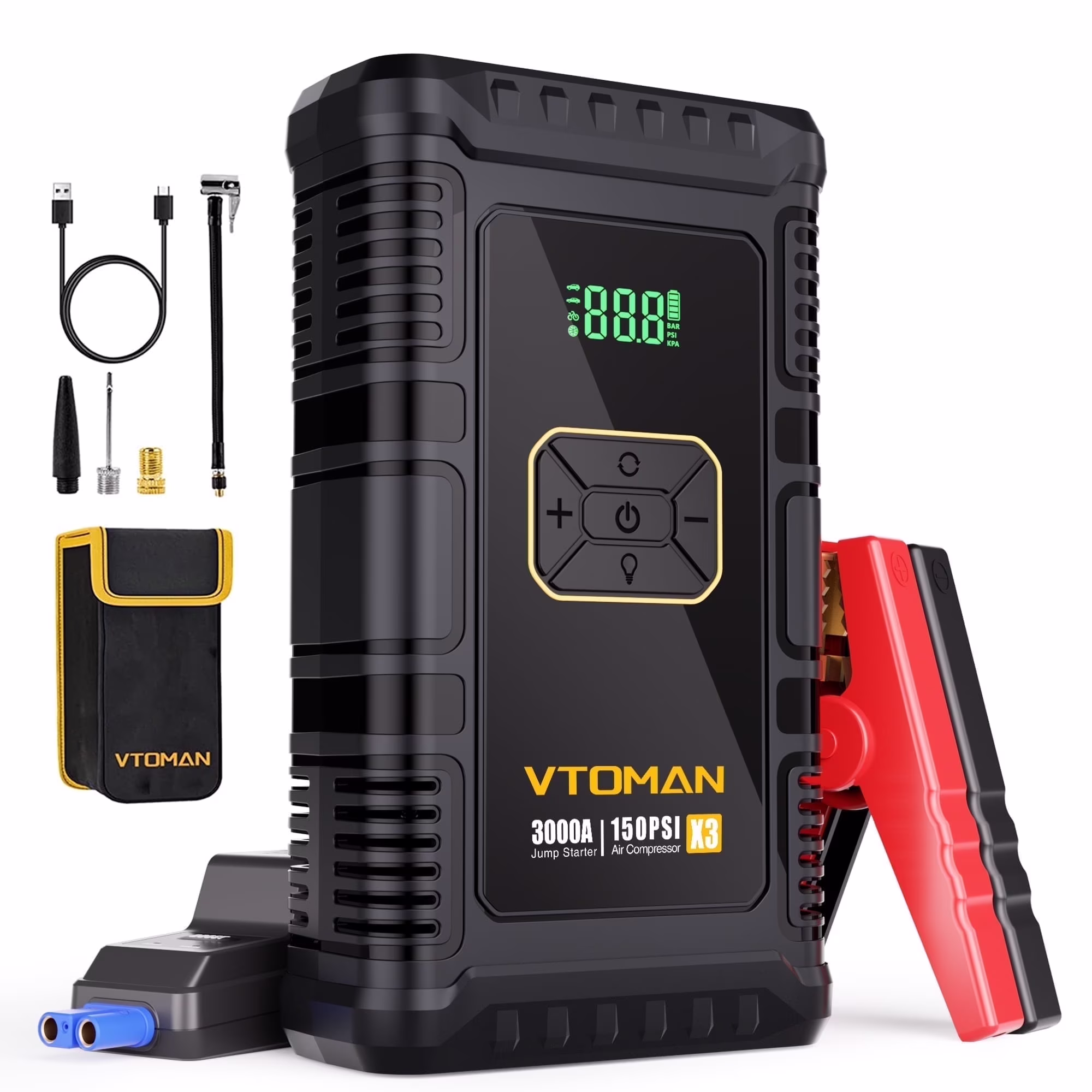 VTOMAN X3 Jump Starter with Air Compressor, 3000A Car Battery Jumper Starter (Up to 8.5L Gas/6L Diesel Engine) with 150PSI Auto Tire Inflator, 12V Portable Booster Pack, Lithium Jump Box Charger