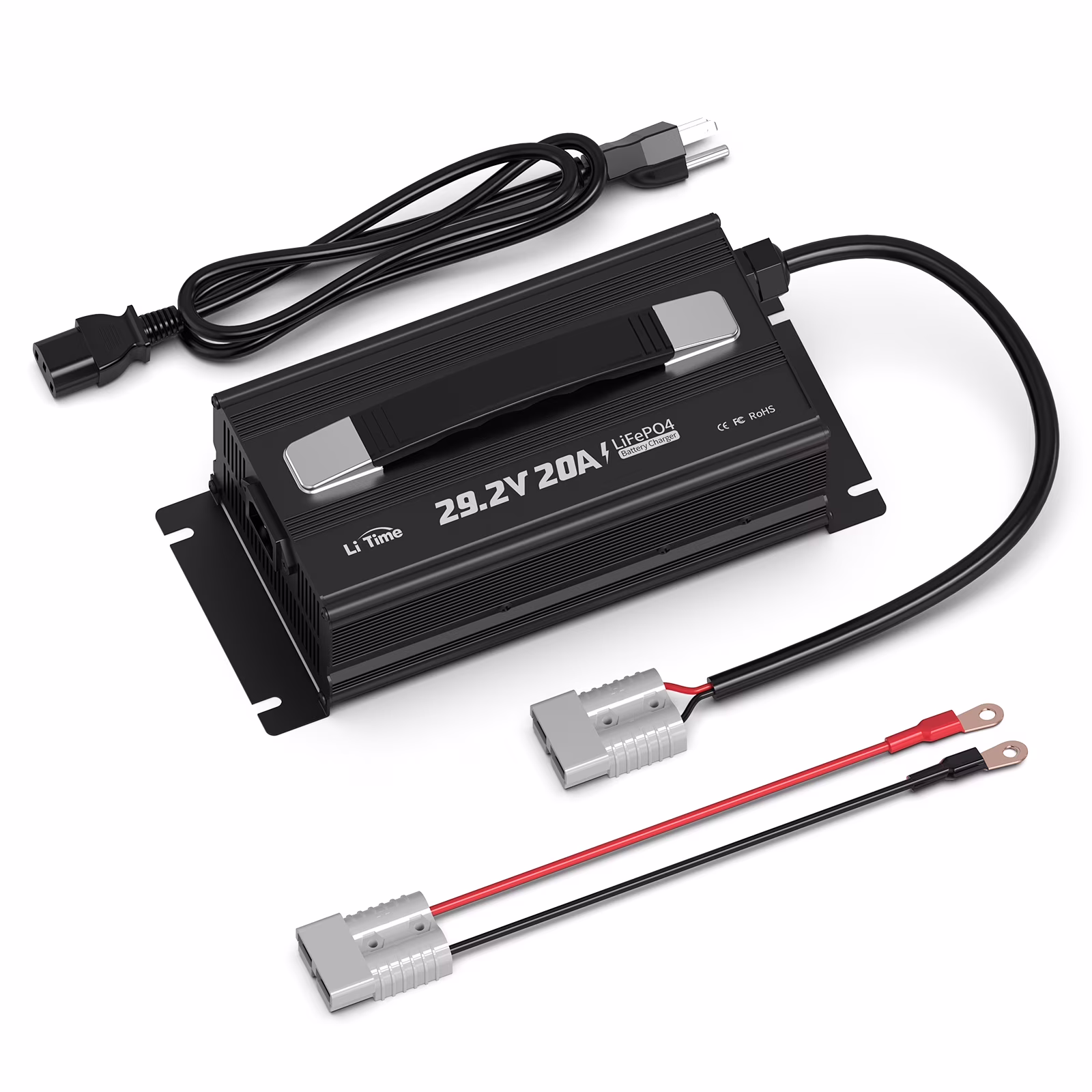 LiTime 29.2V 20A LiFePO4 Battery Charger with LED Indicators, 4 Built-in Safety Protections Support 0V Charging Function for 24V LiFePO4 Battery
