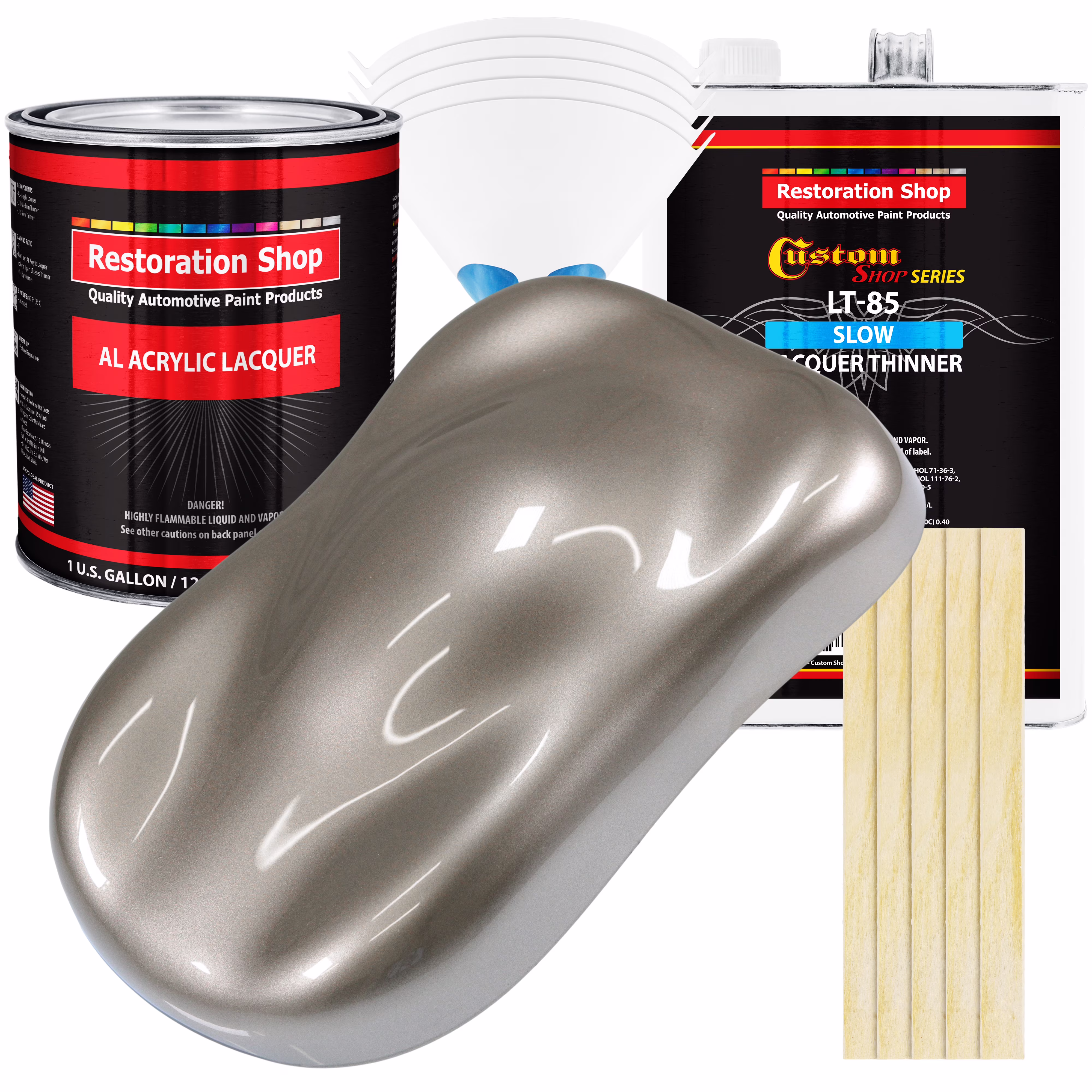 Restoration Shop - Warm Gray Metallic Acrylic Lacquer Auto Paint - Complete Gallon Paint Kit with Slow Thinner
