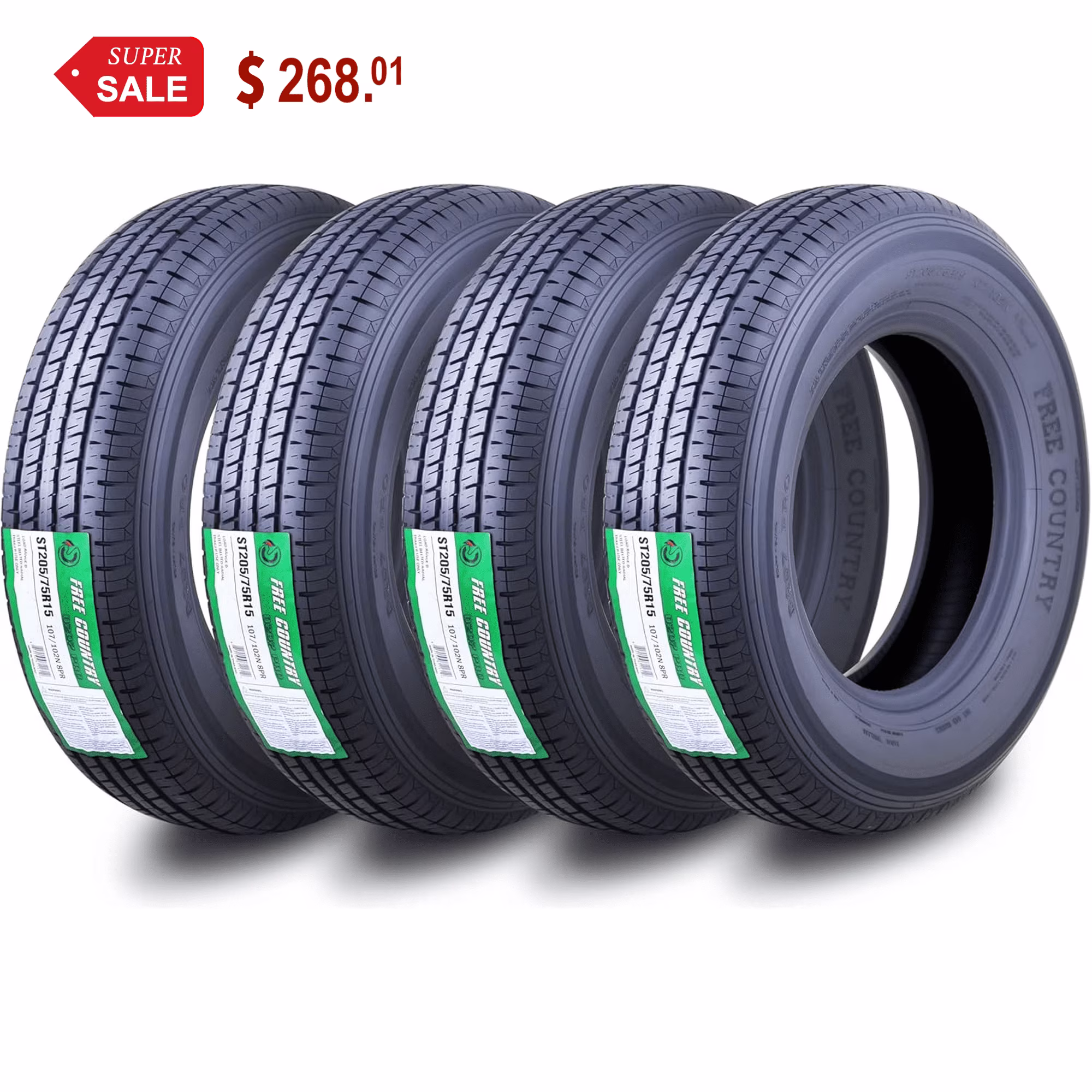 Free Country ST 205/75R15 8 Ply /Load Range D w/Scuff Guard Trailer Tires, Set of 4
