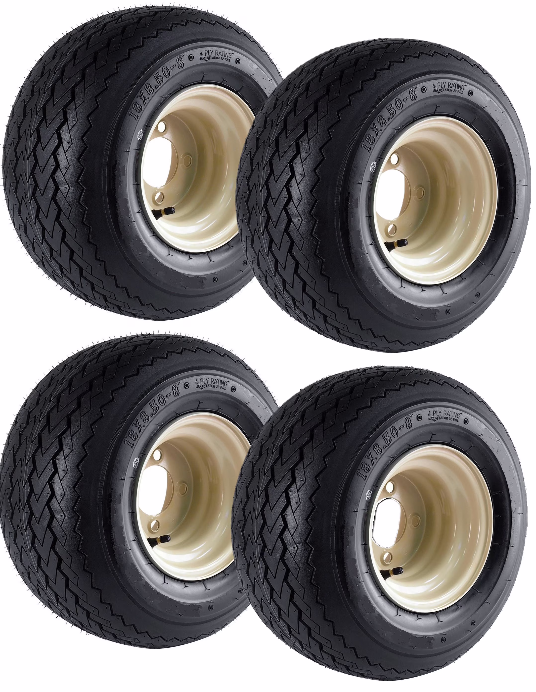 4-Pack 8" Beige Tan Golf Cart Tires Wheels 18X8.50-8 18 x 8.5 x 8 E-Z-GO, Cushman, Yamaha, EZGO