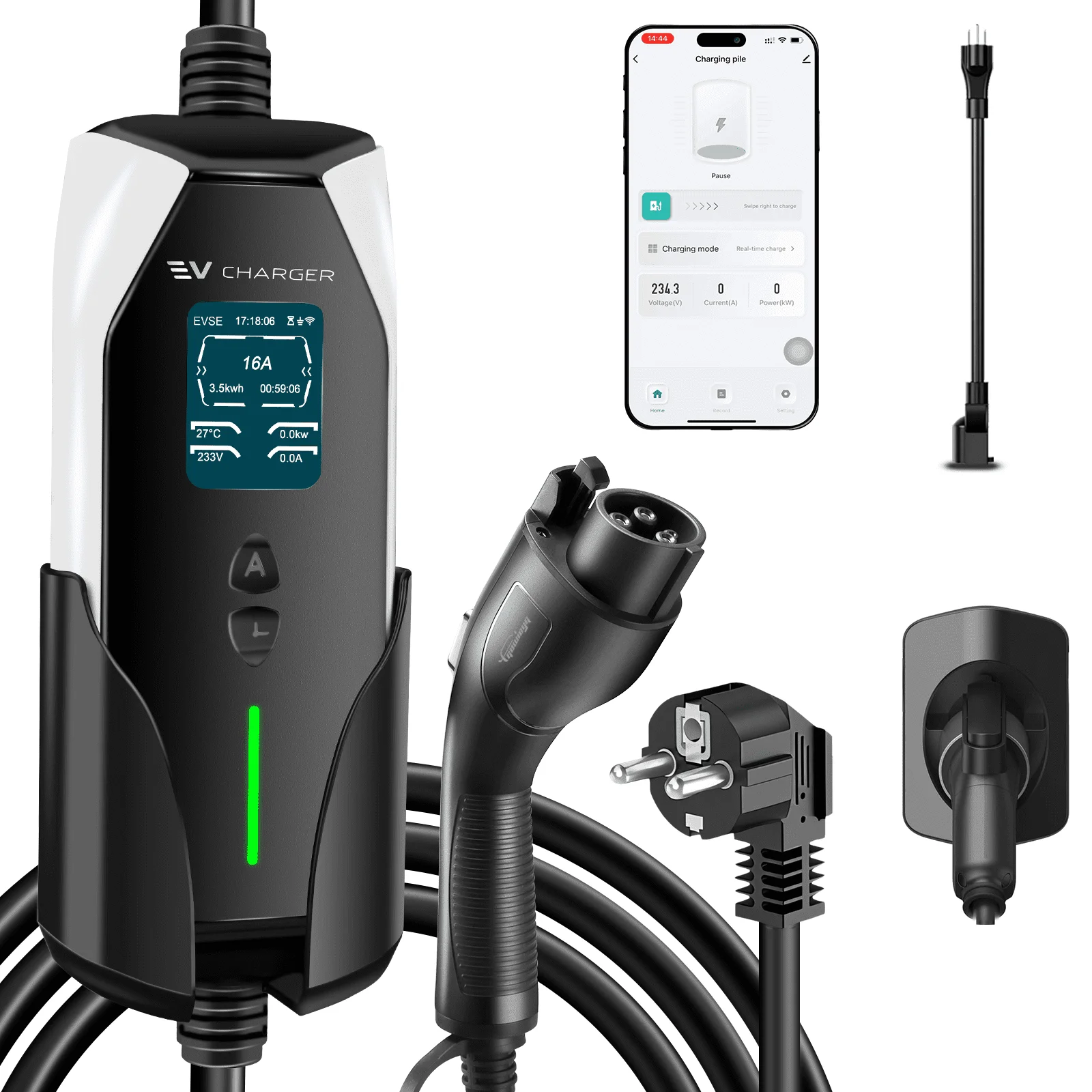 GUWIEYG Portable Level 1&2 EV Charger, 16A 100-240V 25FT J1772 Charger, Portable Electric Vehicle Charging with NEMA 6-20 Plug and NEMA 5-15 Adapter, Adjustable Current, Delay Timer, App Control