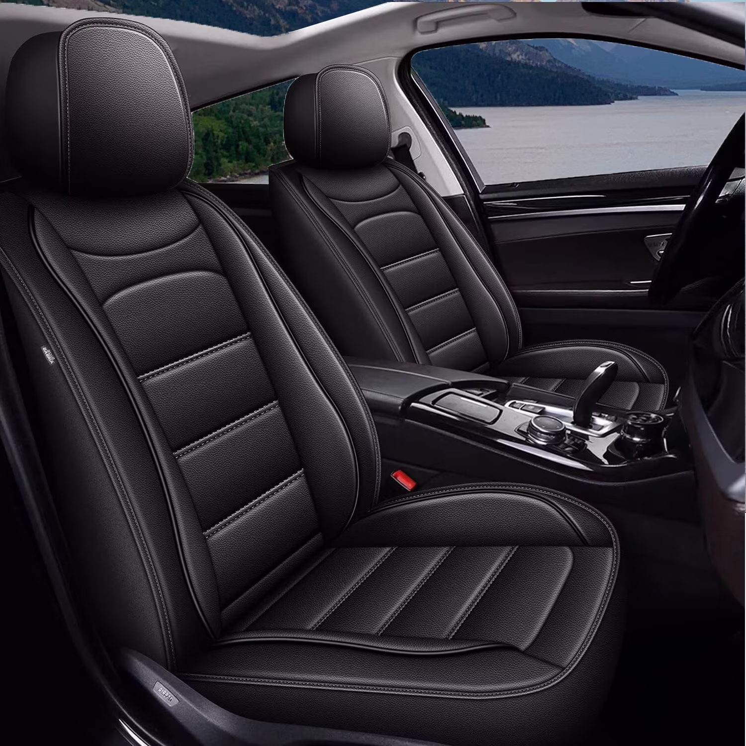 AOMSAZTO Seat Covers Fit for Kia Seltos 2021-2024 Car Seat Covers Full Set 5 Seats Faux Leather Car Seat Cushion Protector (Black)