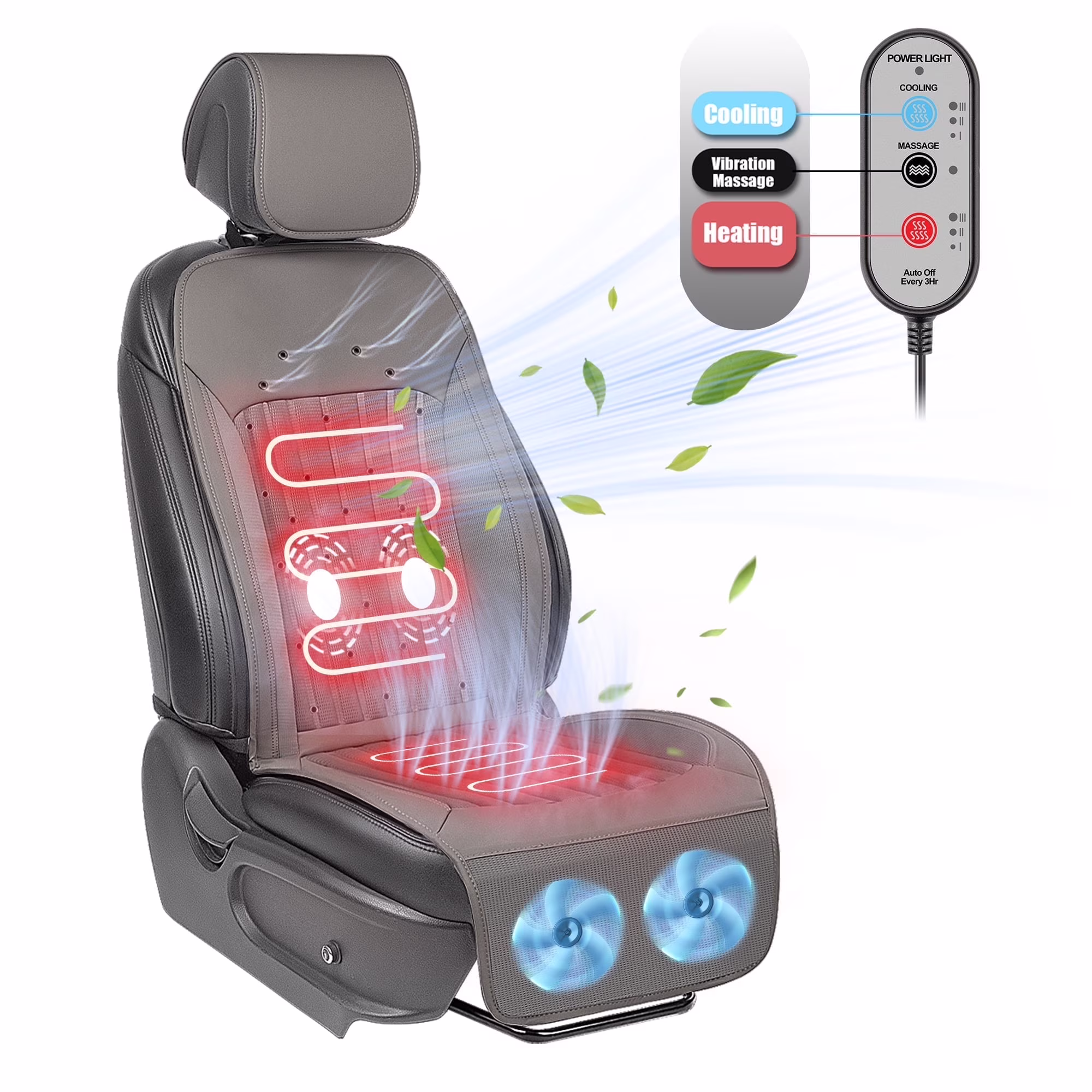 Paffenery 2025 Heating and Cooling Seat Cover Front Seat, 12V-24V Ventilated Cooling Car Seat Cushion, Cooled Seat Cover for Car SUV Truck Universal Fit, Fashion Grey