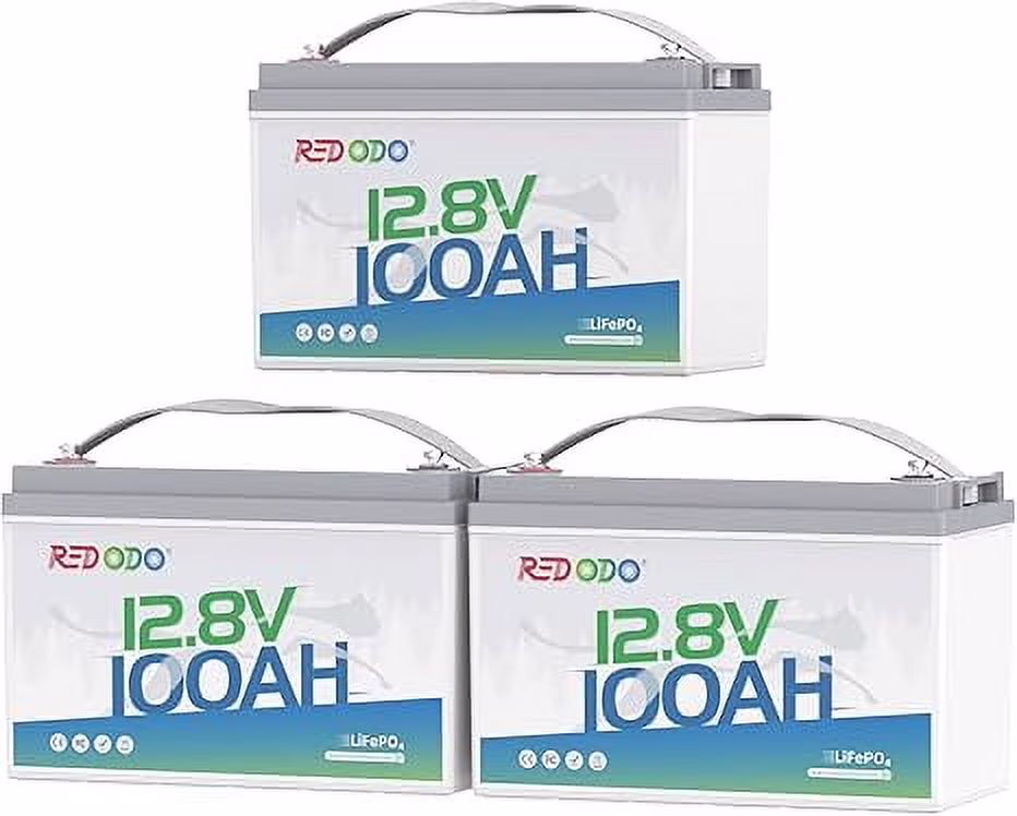 Redodo 3 Pack 12V 100Ah LiFePO4 Battery 100A BMS 1280Wh Group 31 Lithium Battery for RV Solar Energy Storage