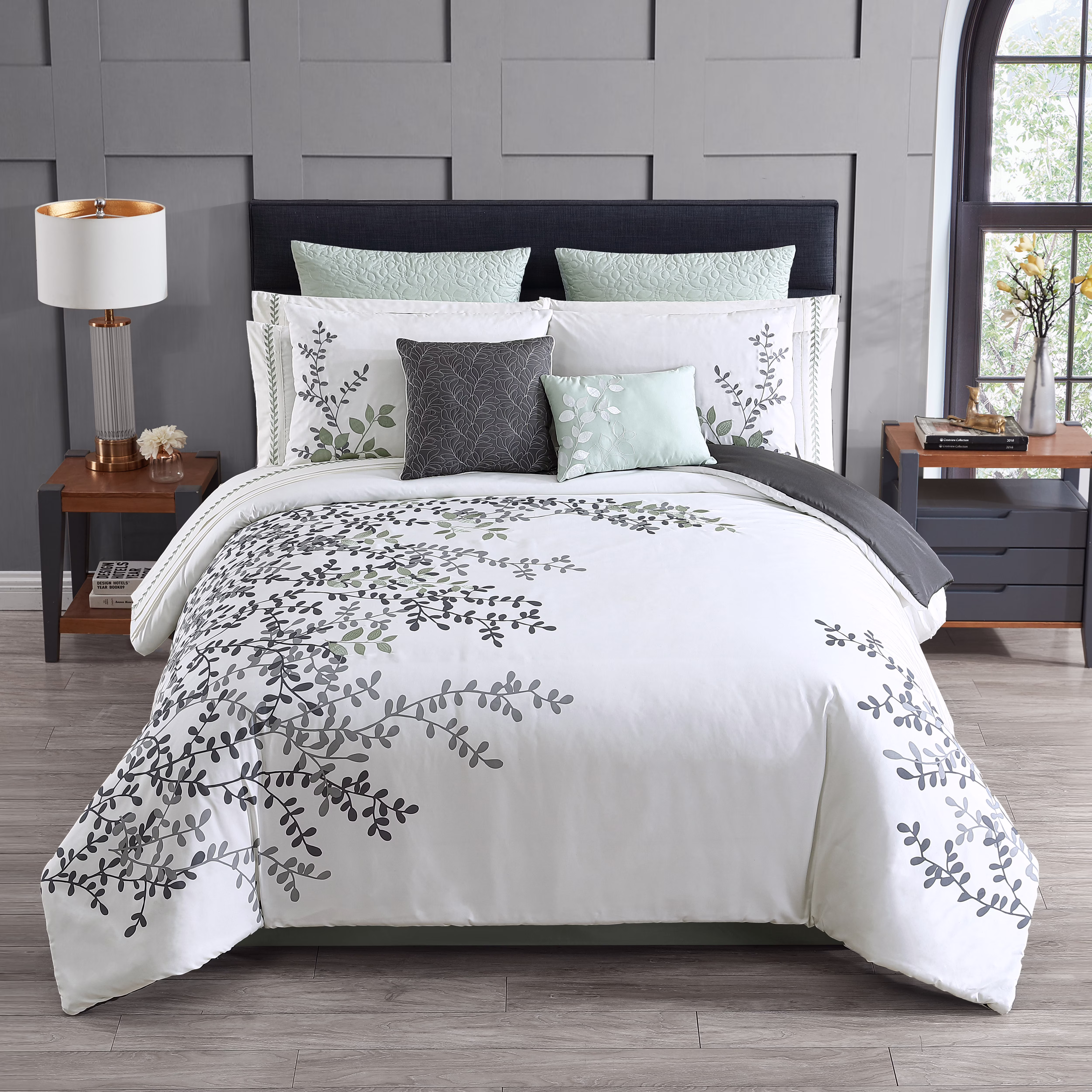 Hotel Style 14 Piece Bed-in-a-Bag Set, King, Sage, Vine Print with Embroidery, Polyfil