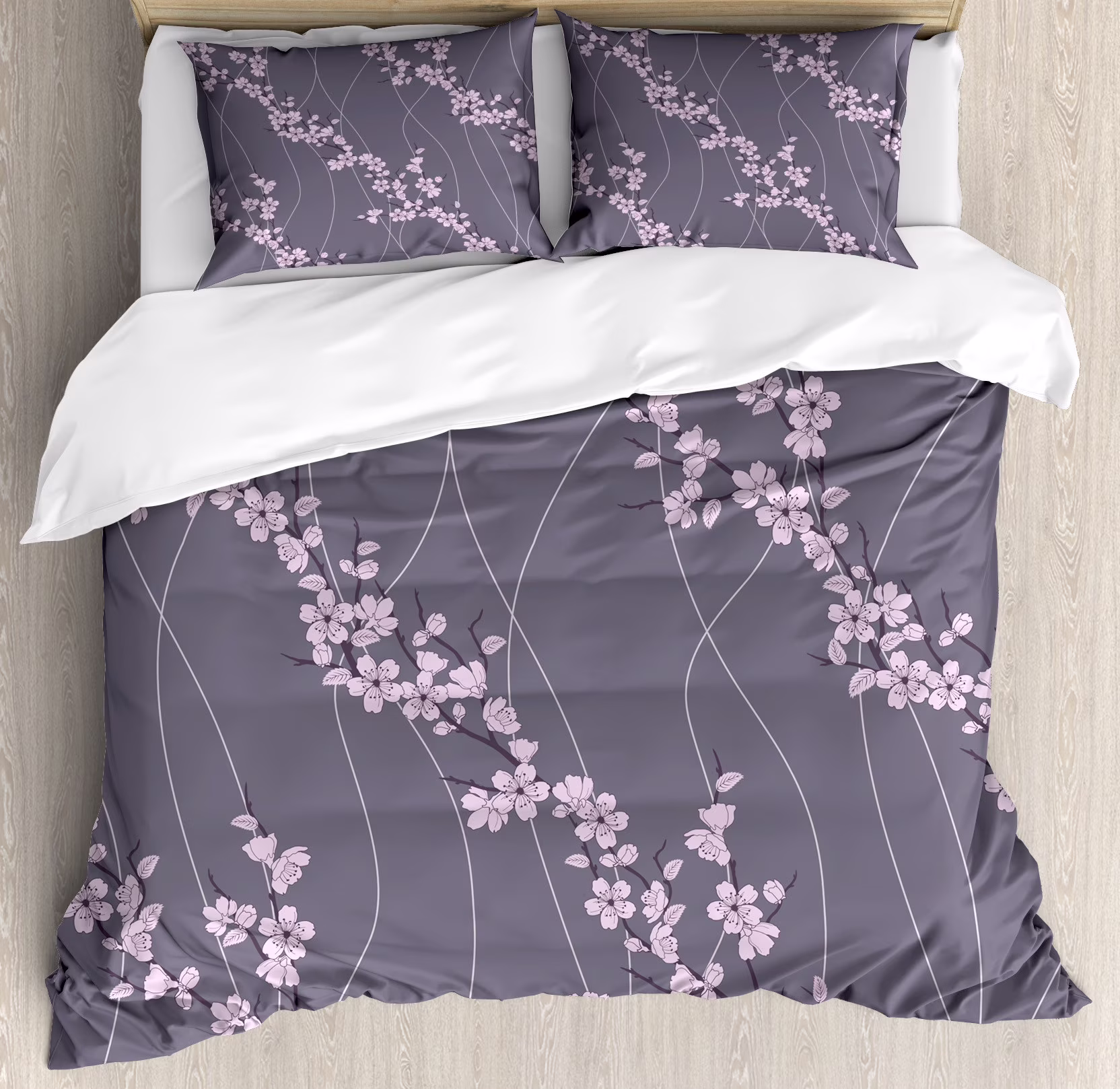 Ambesonne Floral Duvet Cover Set, Japanese Sakura, Calking, Taupe Pale Pink