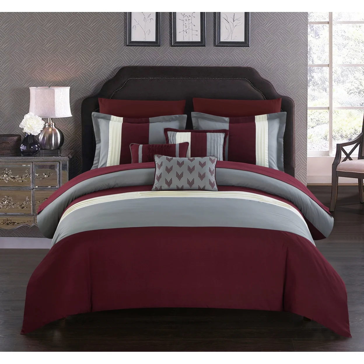 Rashi 10 or 8 Piece Color Block Bed In a Bag Bedding and Comforter Set