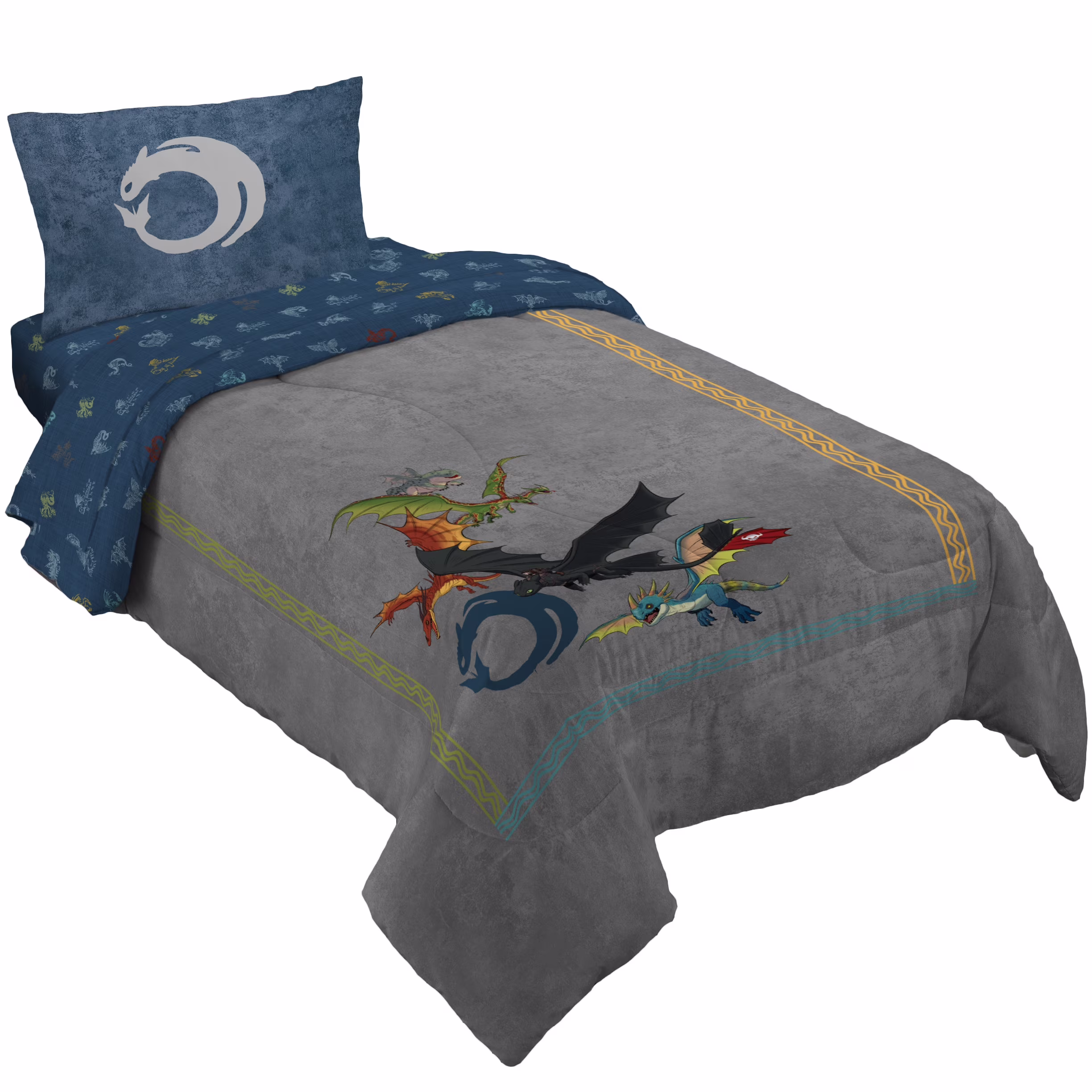 How to Train Your Dragon Kids Twin Bed in a Bag, 4-Piece Bedding Set, Comforter and Sheets