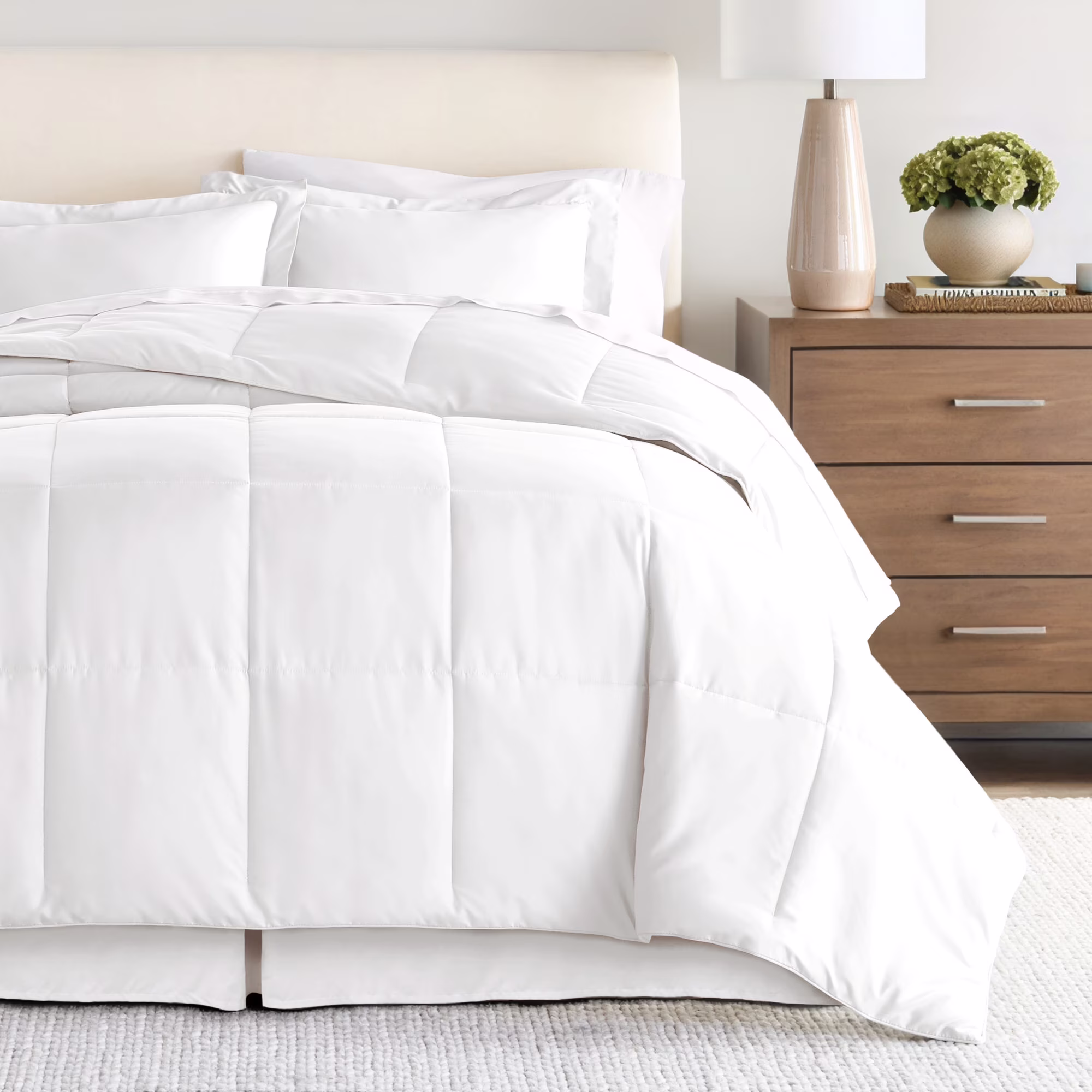 Noble Linens 8-Piece White Bed in a Bag Microfiber Bedding Set, Queen