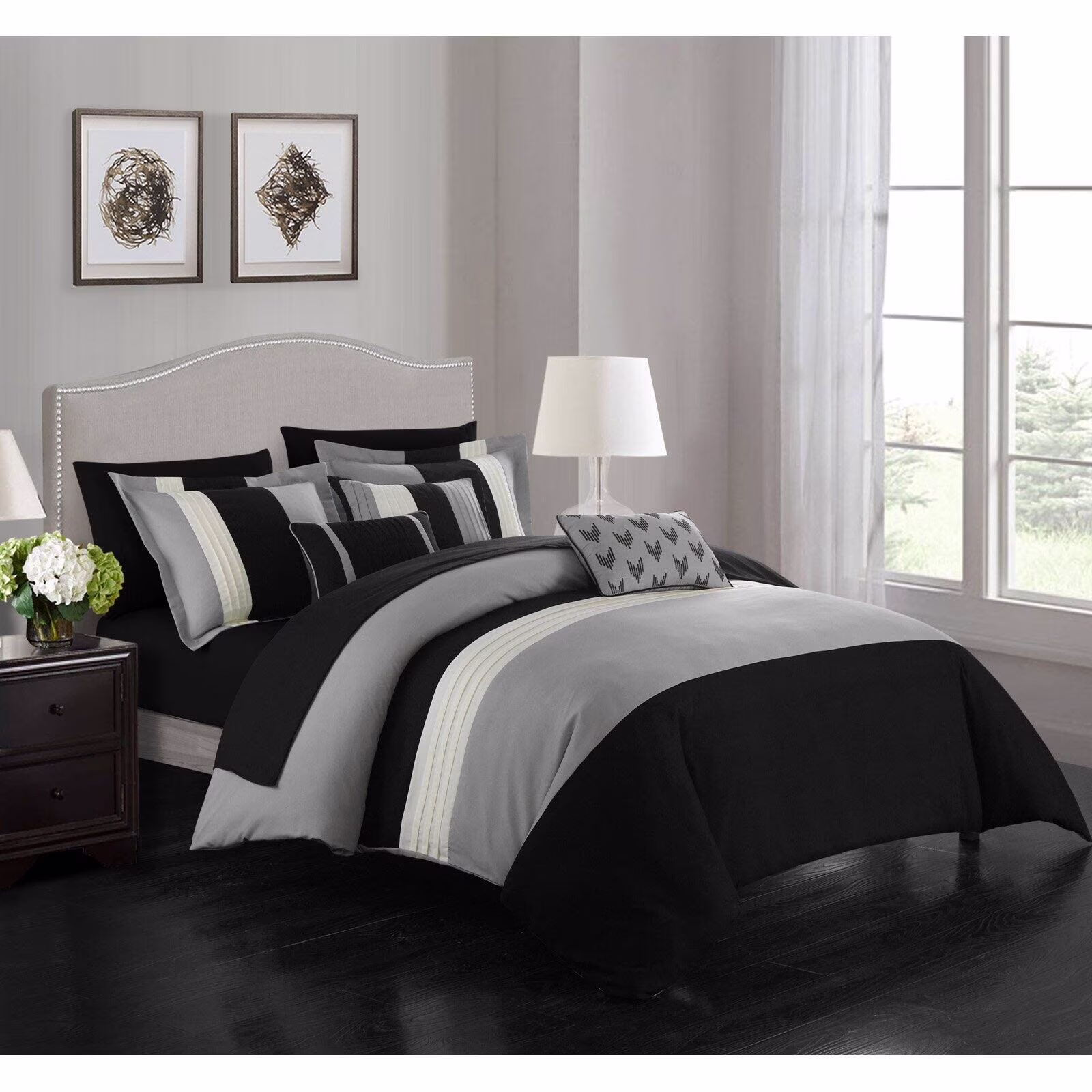 HIG Gray 7 Piece Bed in a Bag Comforter Set, Queen Bed Sets for Adults