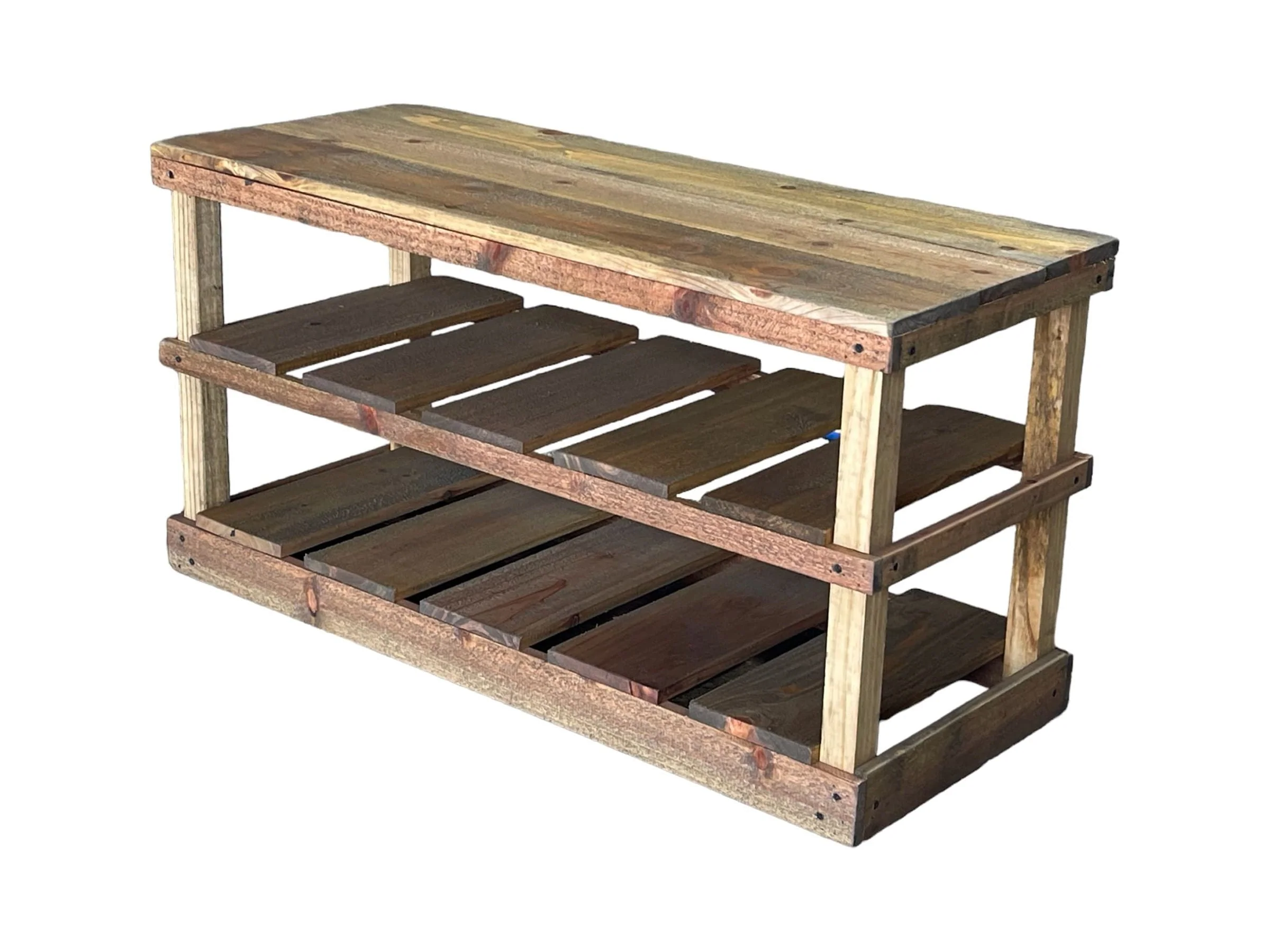 Woven Paths Rustic Slatted Shelf Real Wood Tiered Shoe Storage Bench, Natural, 19.5H x 15.5D x 36L