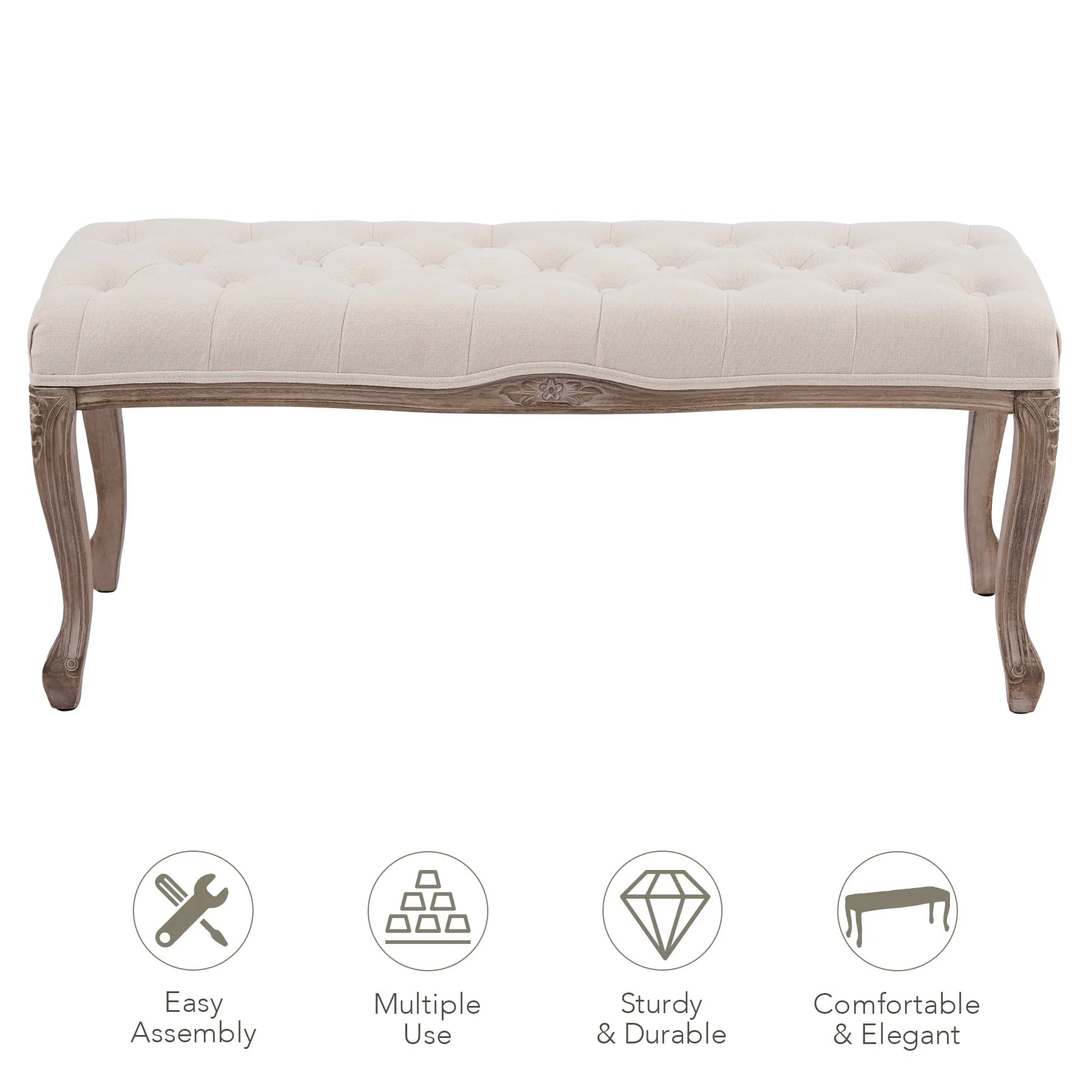 Roundhill Furniture Leviton Fabric Tufted Dining Bench