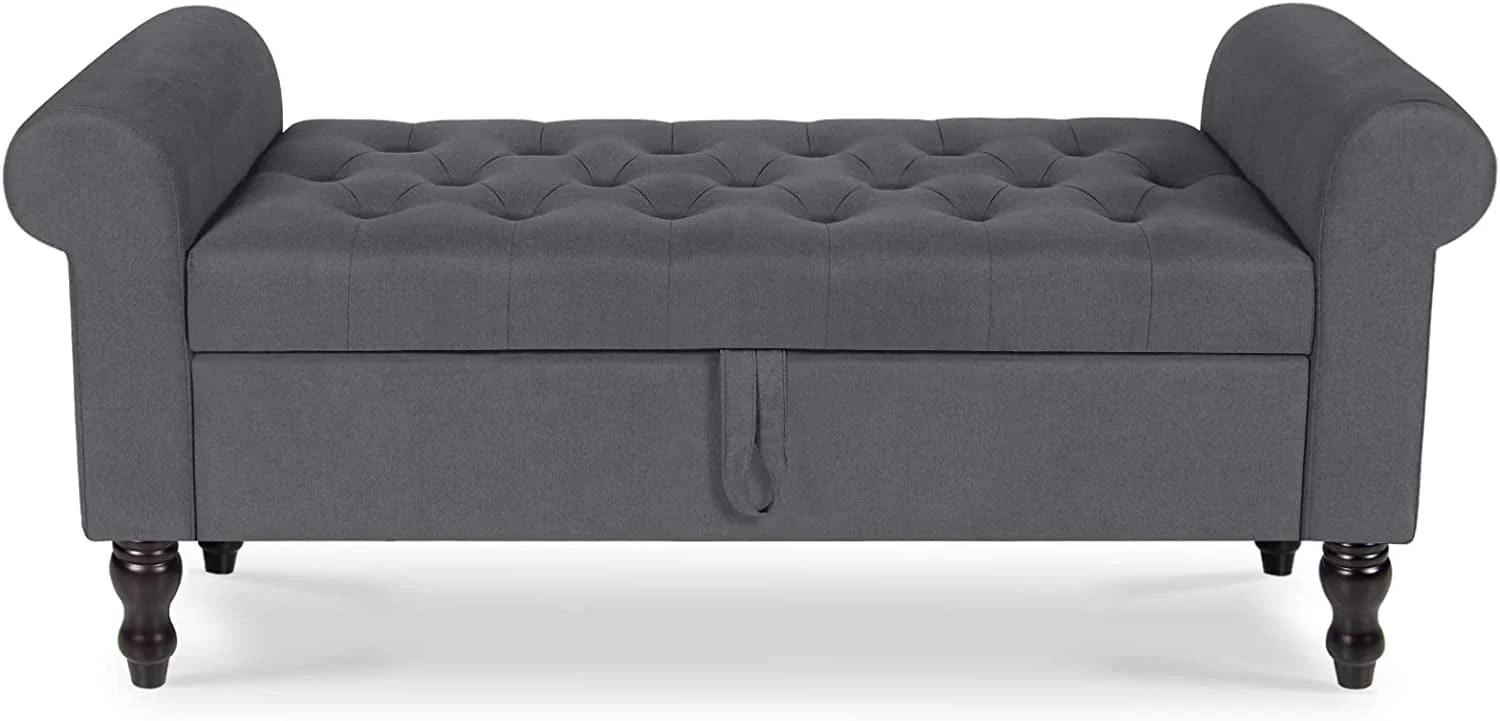 Storage Bench with Upholstered Rolled Arm Ottoman Bench Couch w/ Solid Wood Legs for Bedroom End of Bed,and Living room,Gray
