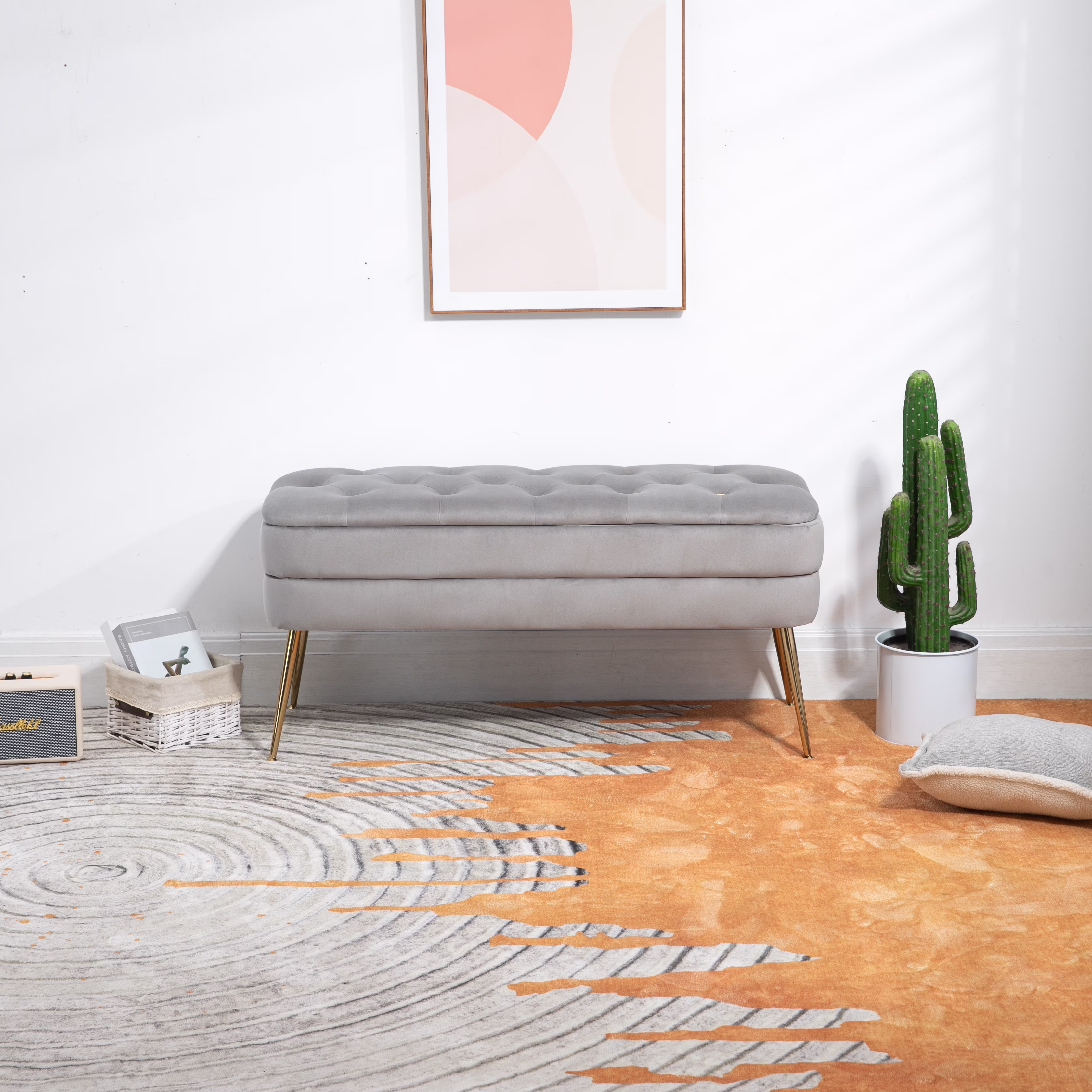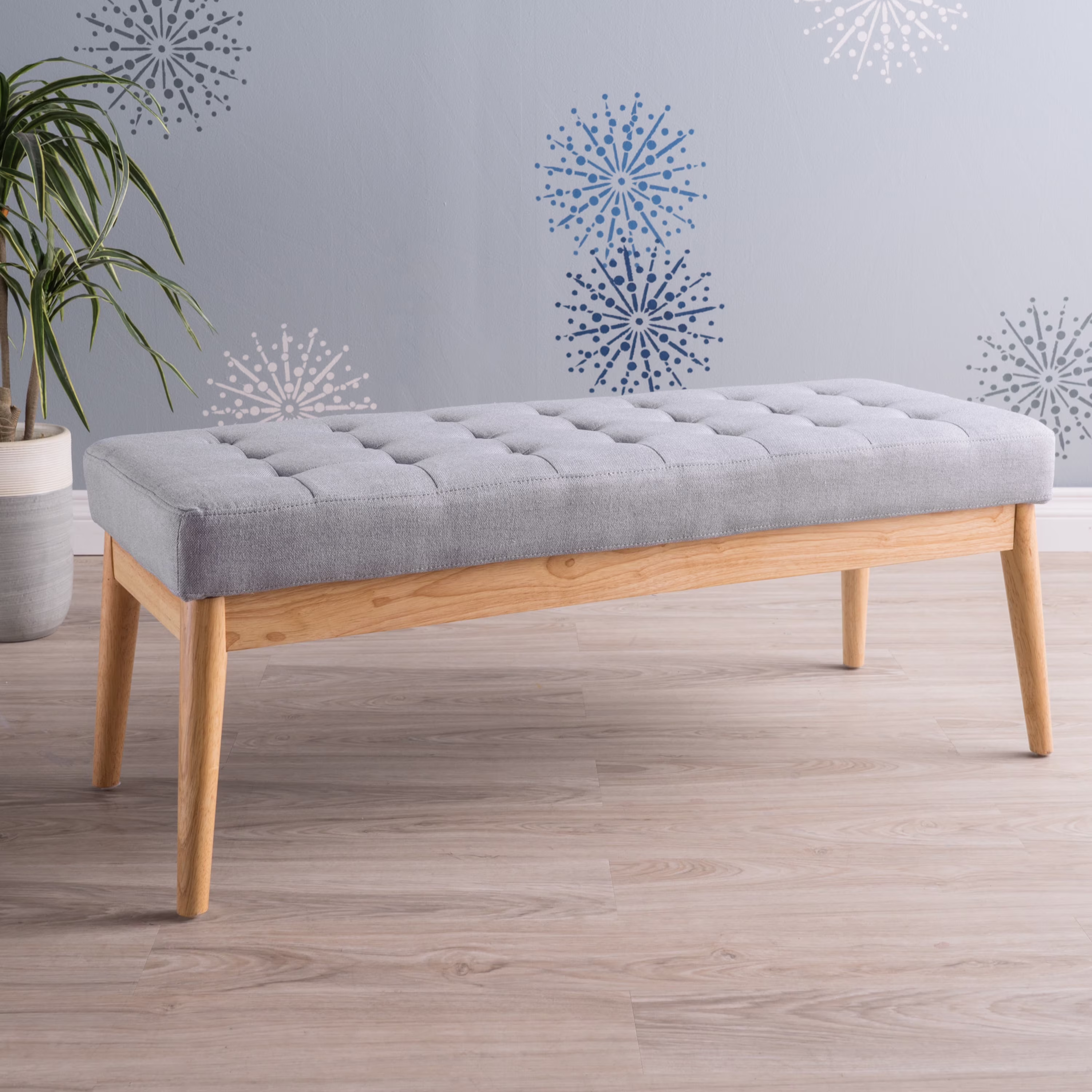 44.75" Mid-Century Tufted Bench �C Solid Birch Legs �C Plush Polyester Blend �C 17" Height �C 19.62 lbs