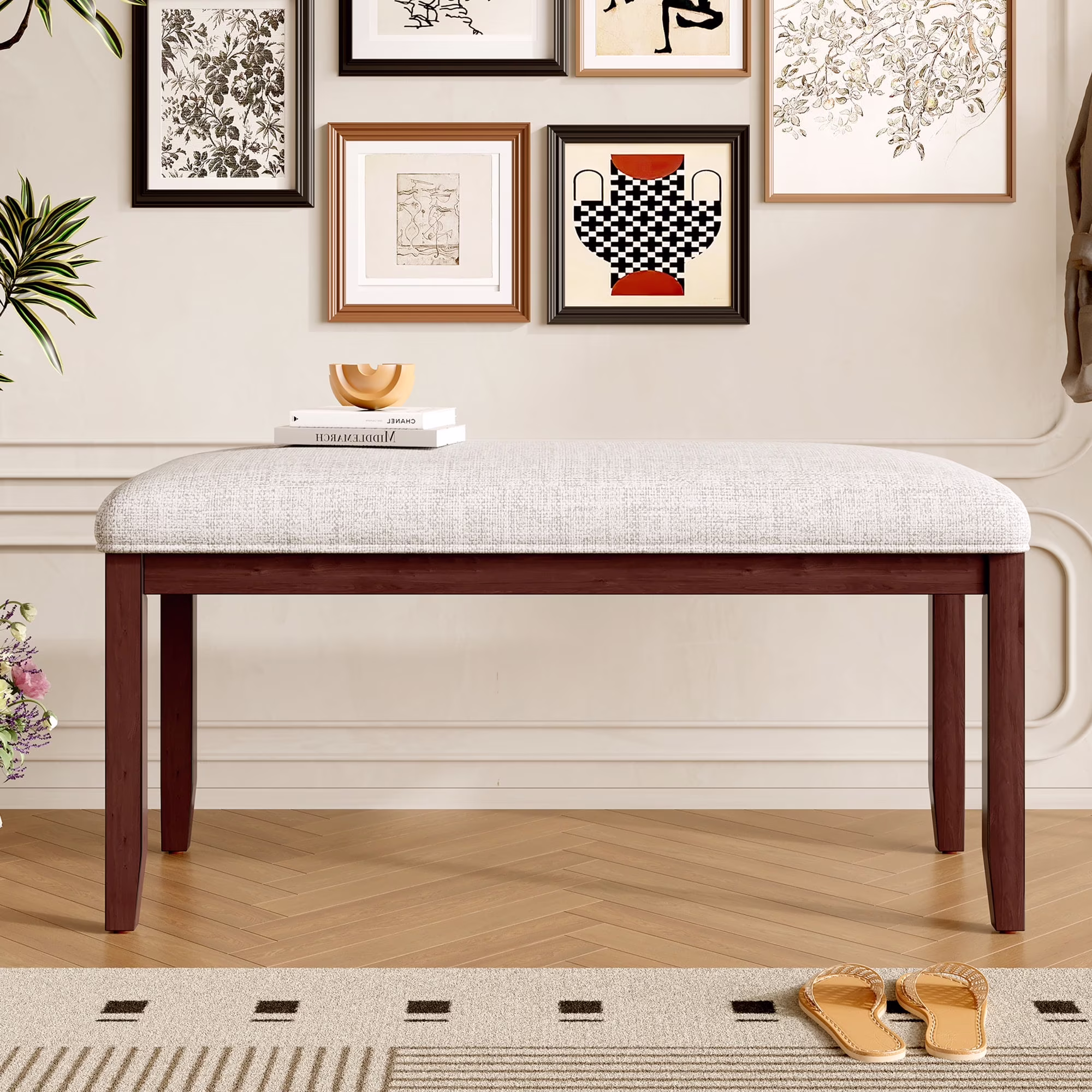Upholstered Bench 38-inch Entryway Bench for Living Room, Dining Bench with Padded Seat, Cherry