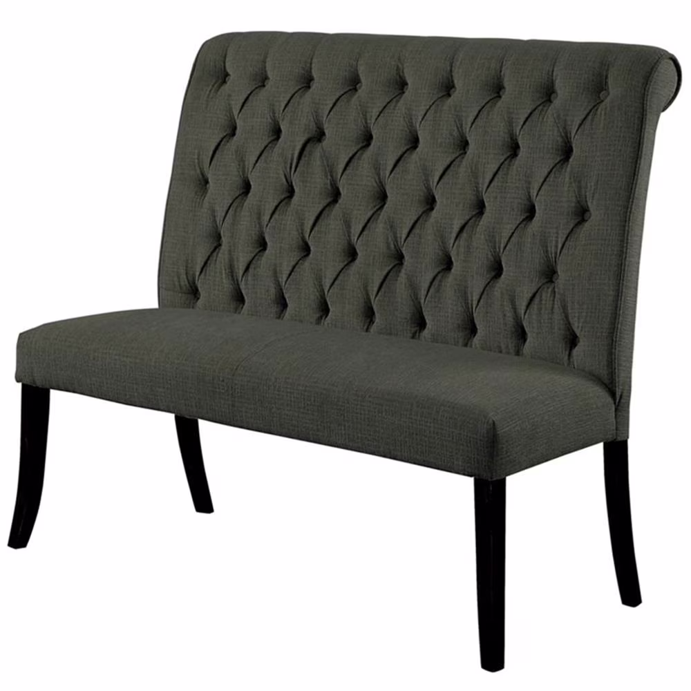 Furniture of America Landon Transitional Fabric Tufted Loveseat Bench in Gray