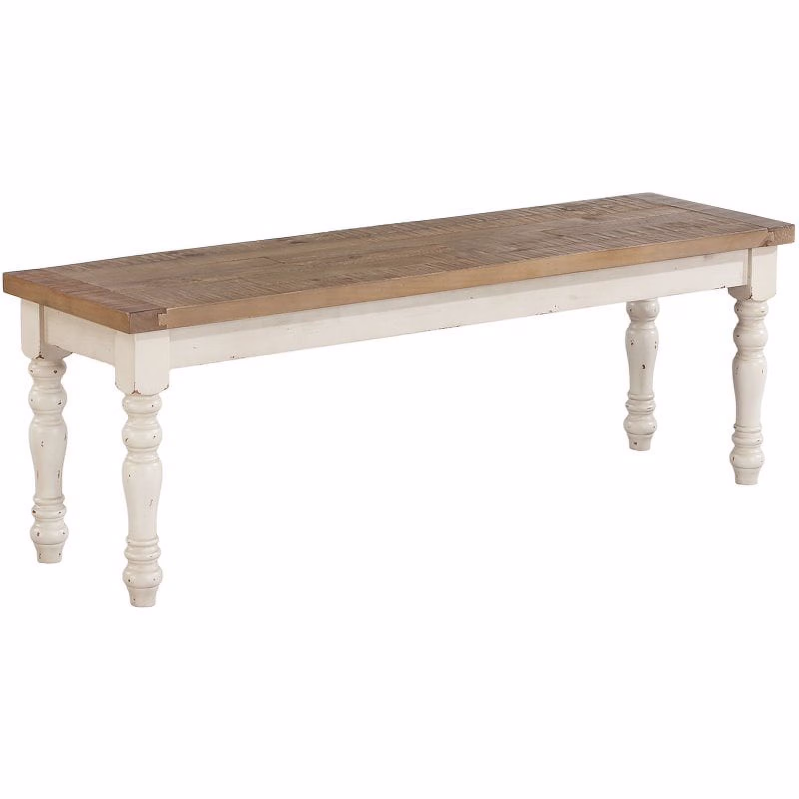 Roundhill Furniture Prato Two-Tone Wood Bench Antique White/Distressed in Oak