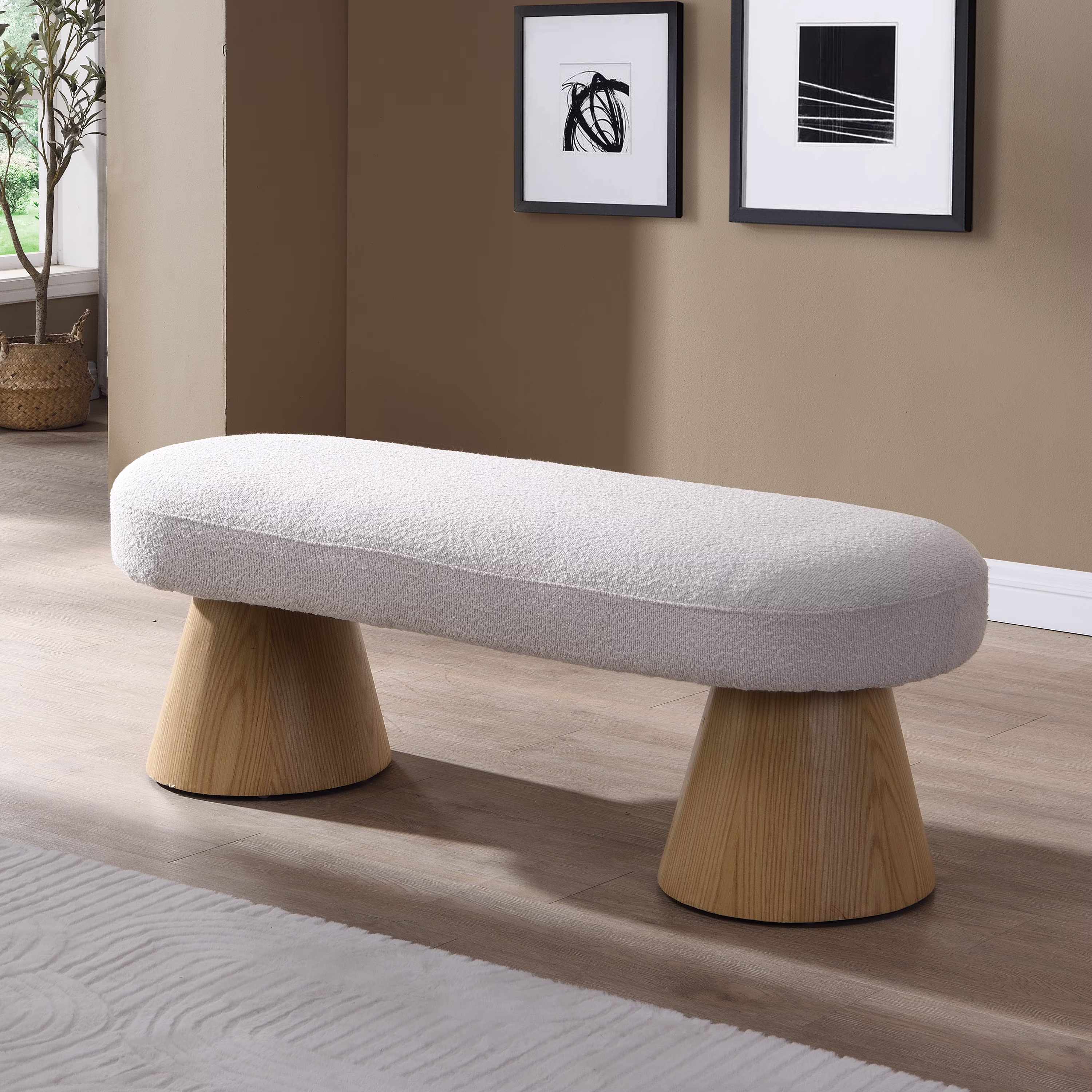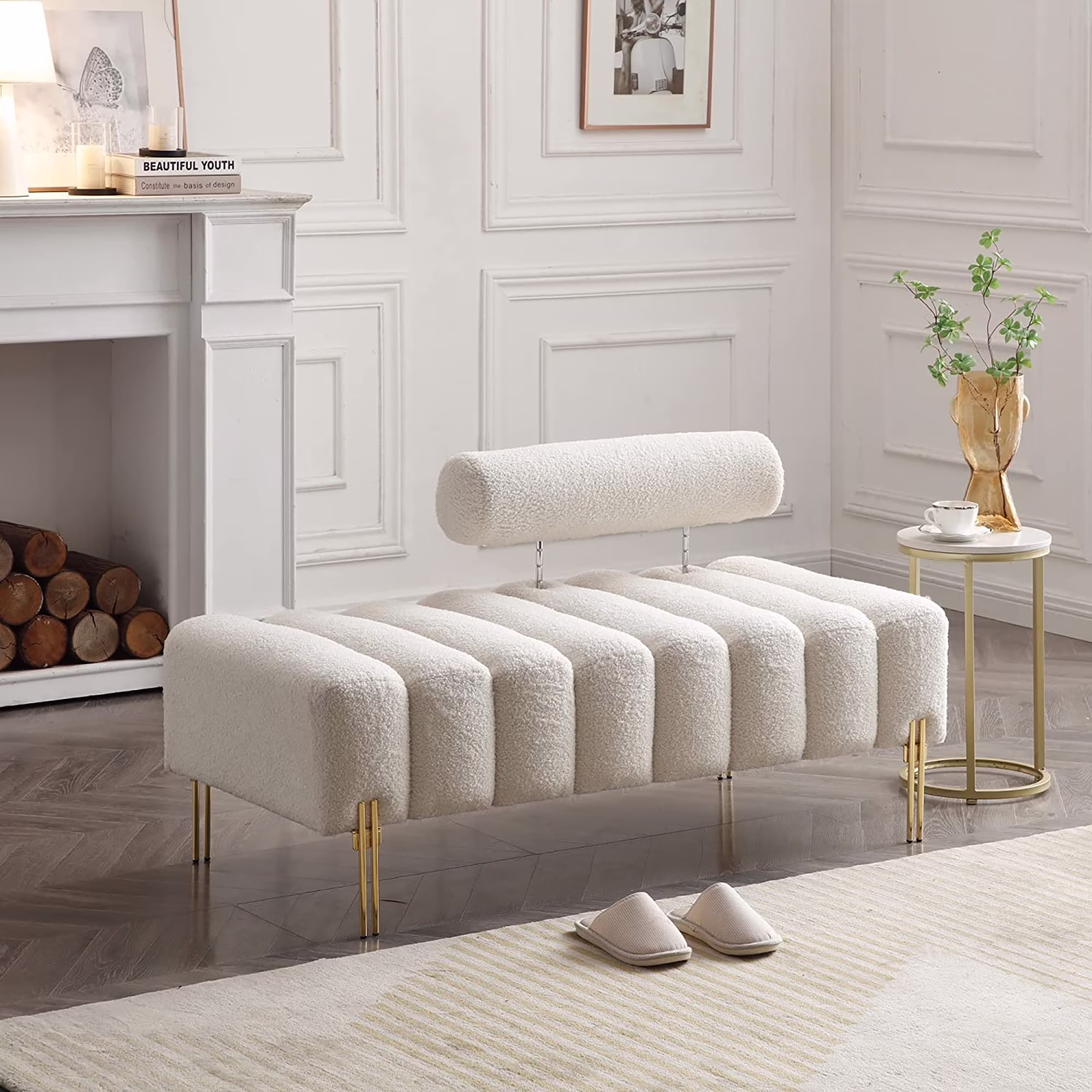 Miniyam Sherpa Upholstered Indoor Bench, White