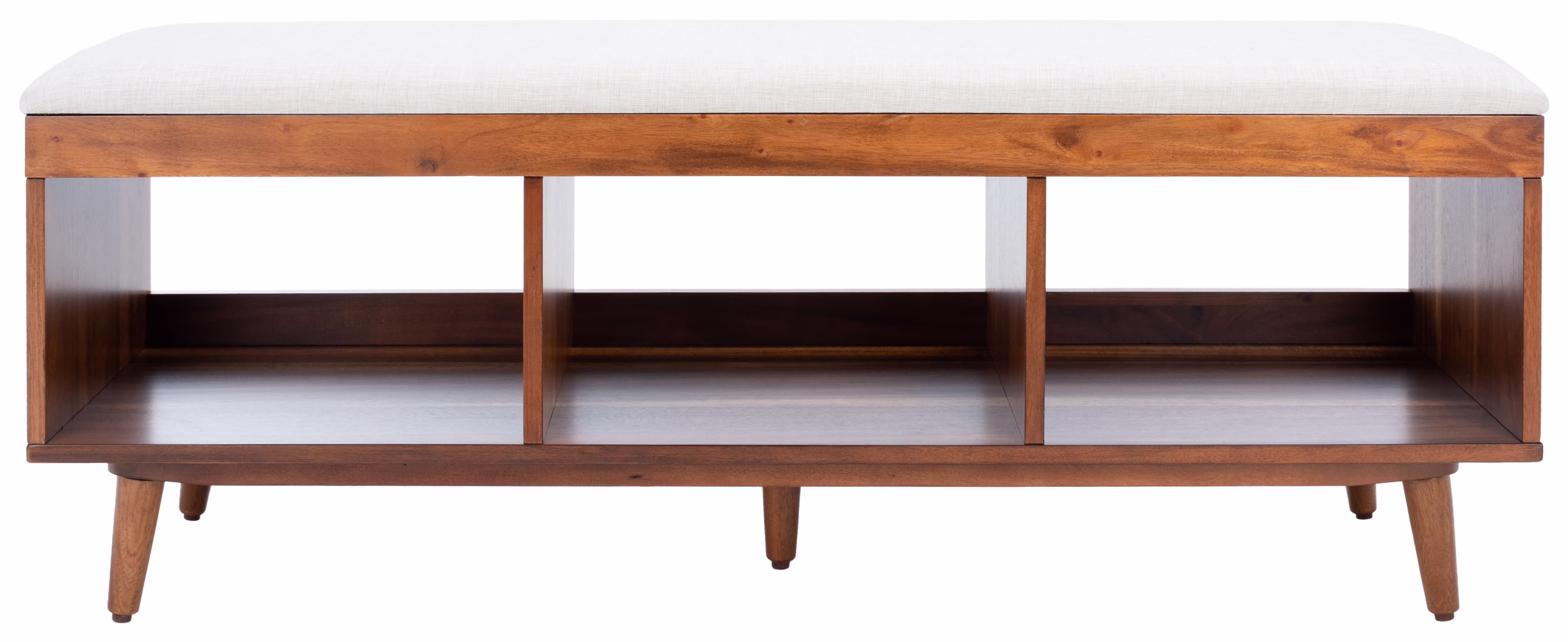 SAFAVIEH Cricket Open Shelf Bench with Cushion, Cream Linen/Natural Acacia (47.6 in. W x 14 in. D x 18 in. H)