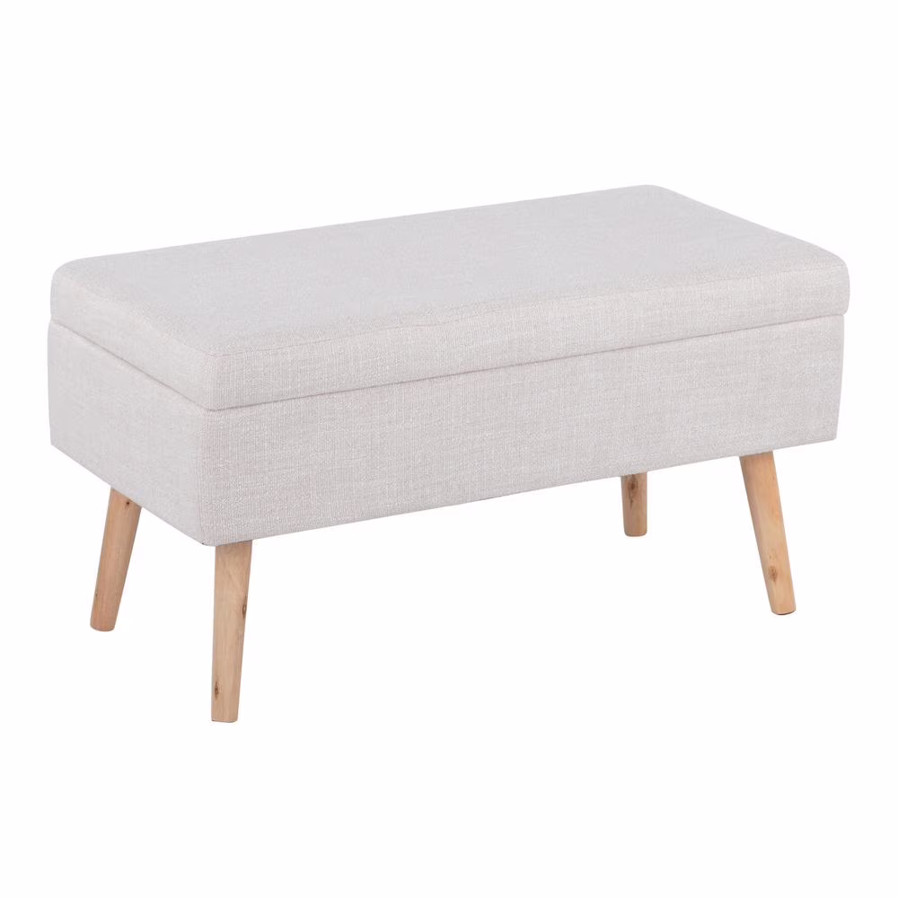 LumiSource Natural Wood, Beige Fabric Storage Bench