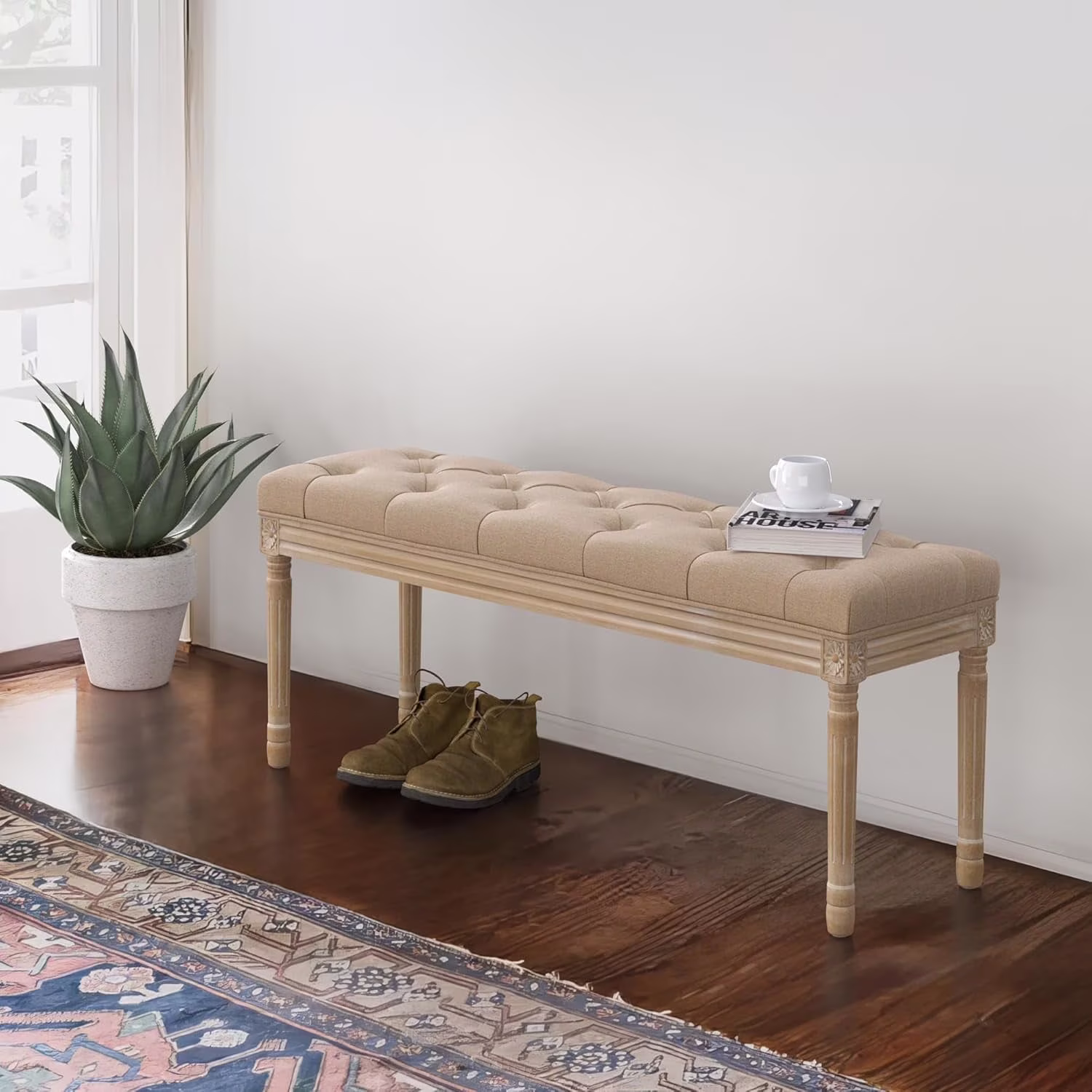 Dycanpo 44'' End of Bed Bench, Vintage Upholstered Bench for Entryway, Wheat