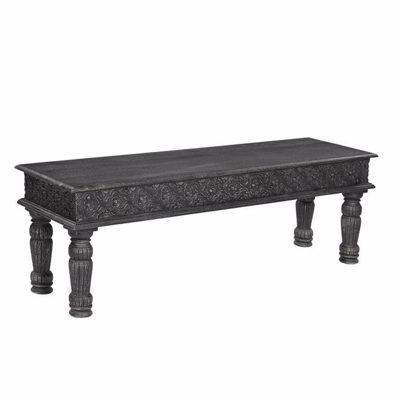 58 in. Black Distressed Solid Wood Dining Bench