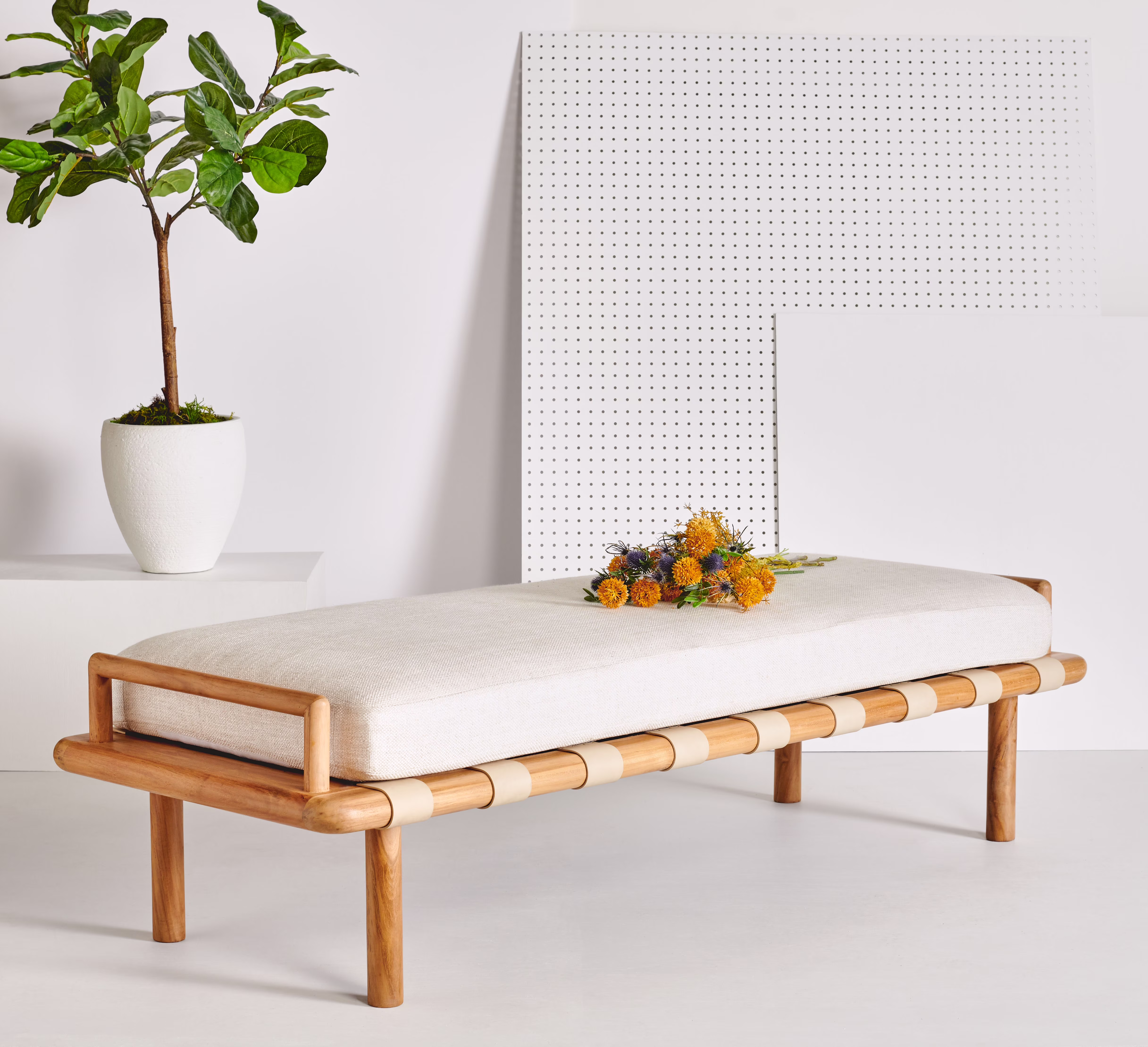 SAFAVIEH Couture Constantine Solid Linen Contemporary Bench, Natural/White