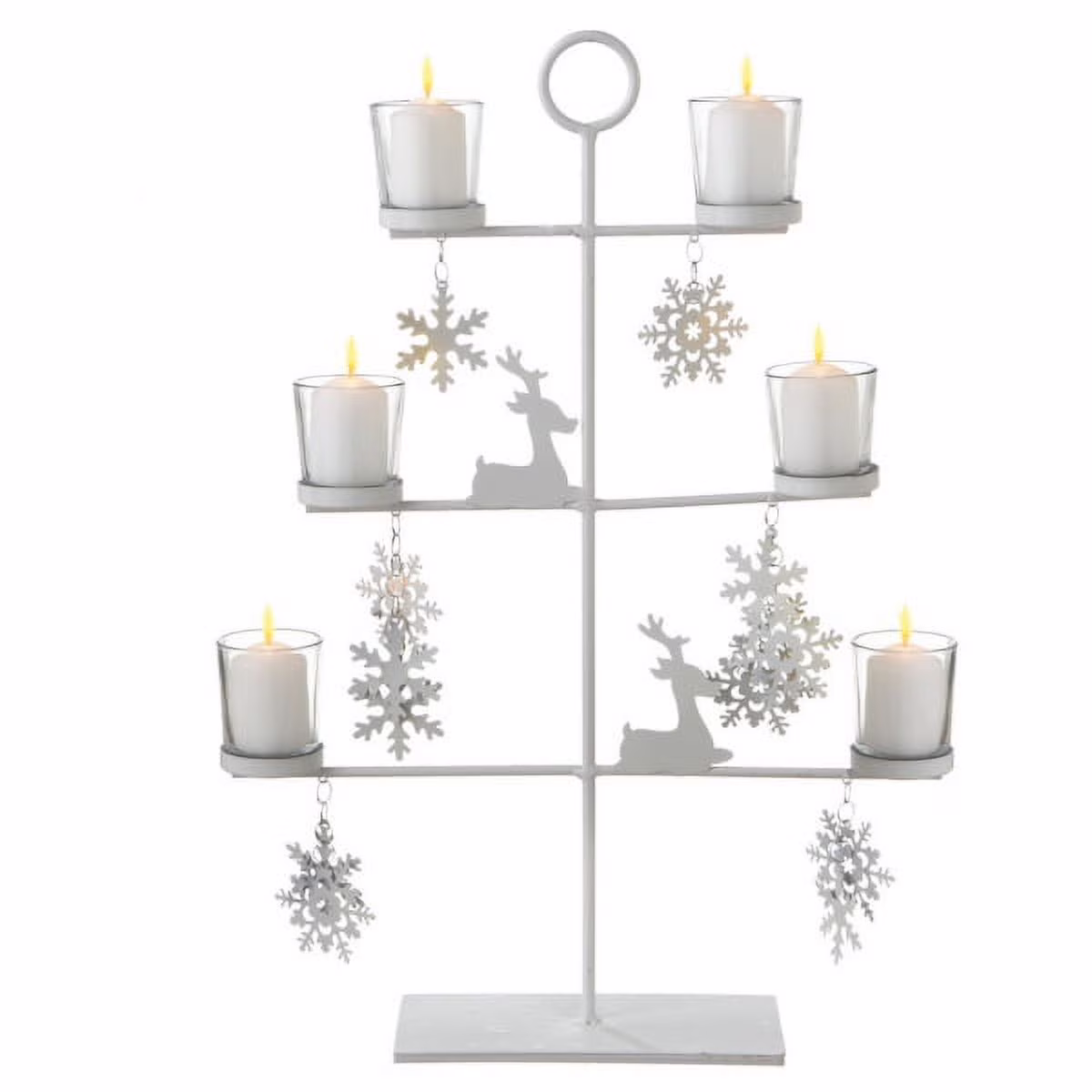 20.5" White Reindeer and Snowflakes Votive Candle Holder Tabletop Tree