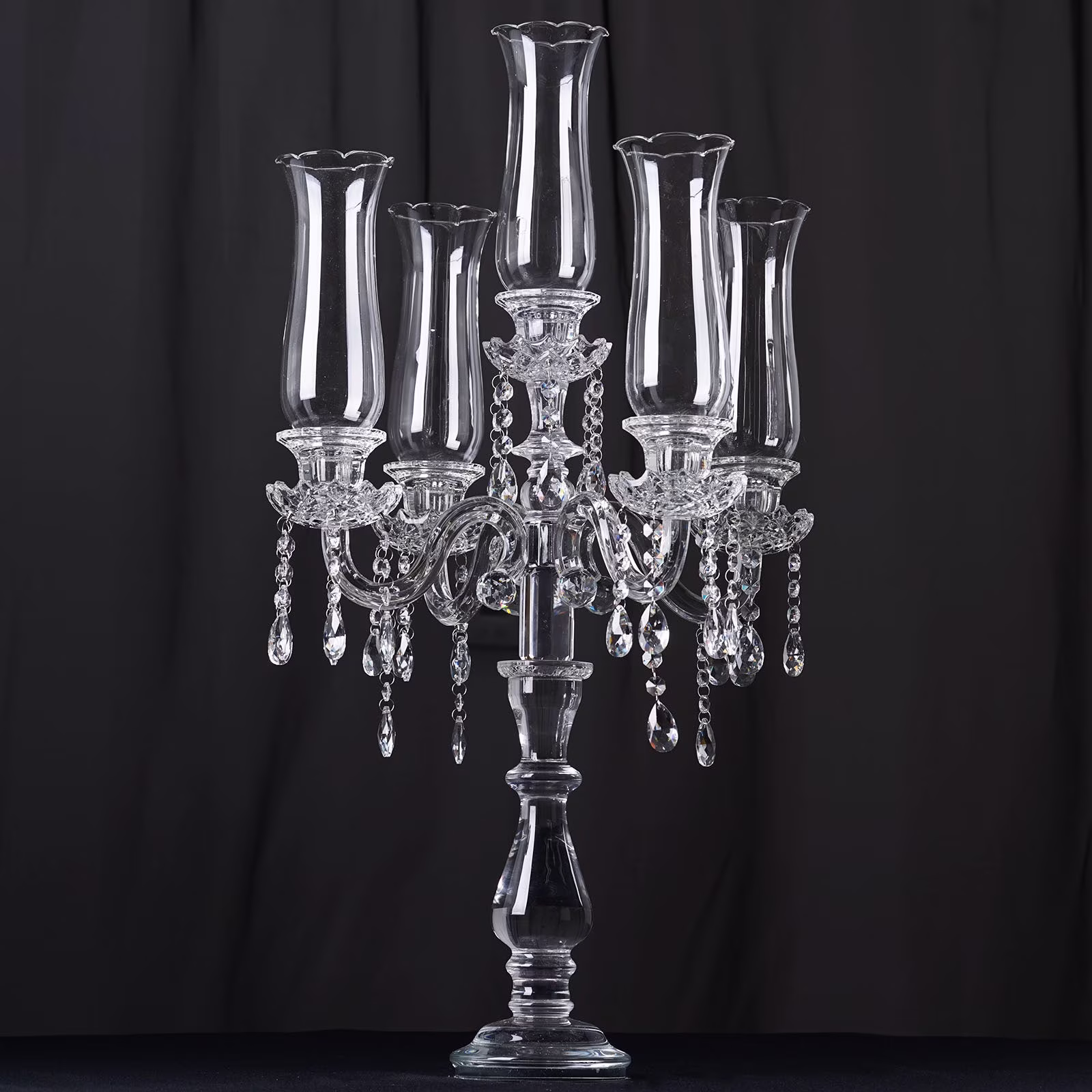 Efavormart 20" Premium Crystal Glass Hurricane Candle Taper Candlestick Holder With Chandelier Chains