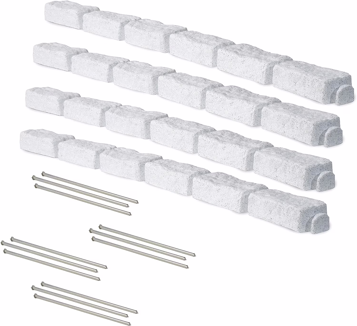 Beuta Landscape Edging | Garden Edging Border | No Dig Faux Stone Bricks for Lawn Edging, Flower beds, Pathways & Yard– 4 Packs | Each Section Has 6 Bricks 48" L x 4" W x 2.25" H |12 Spikes |Limewash