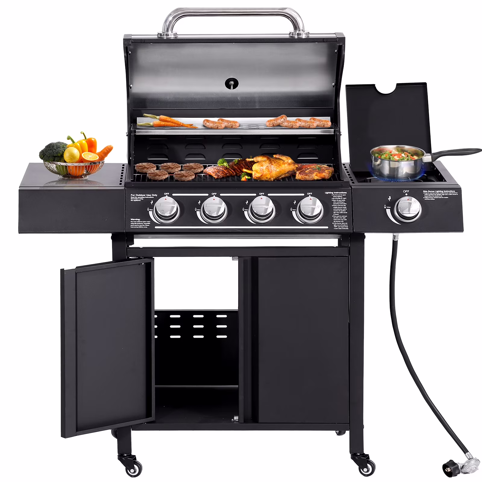 Haverchair 4-Burner Gas Grill Propane with Side Burner 50,000 BTU Outdoor BBQ Propane Gas Grill Cart Barbecue Grill for Patio Garden Picnic Backyard Cooking Camping,Black