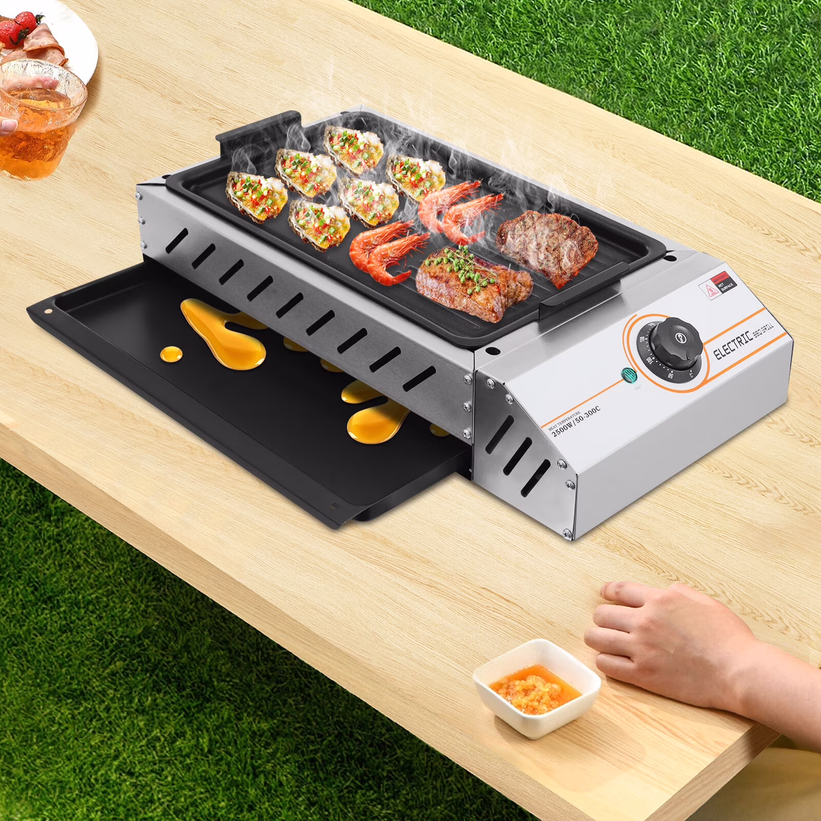ToppiJoy 122-572°F Electric Griller, Adjustable Temperature Control Teppanyaki Flat Grill for Outdoor Cooking Kitchen and Patio Backyard Barbecue