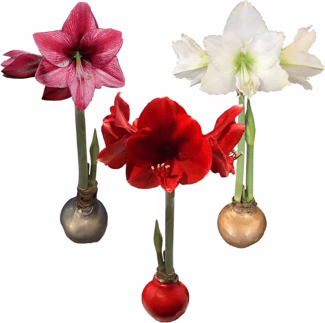 Waxed Amaryllis Bulb 28/30cm Holiday Collection---One Each Red Victory, White Denver, and Revelation Amaryllis--Perfect Holiday Gift Bundle!