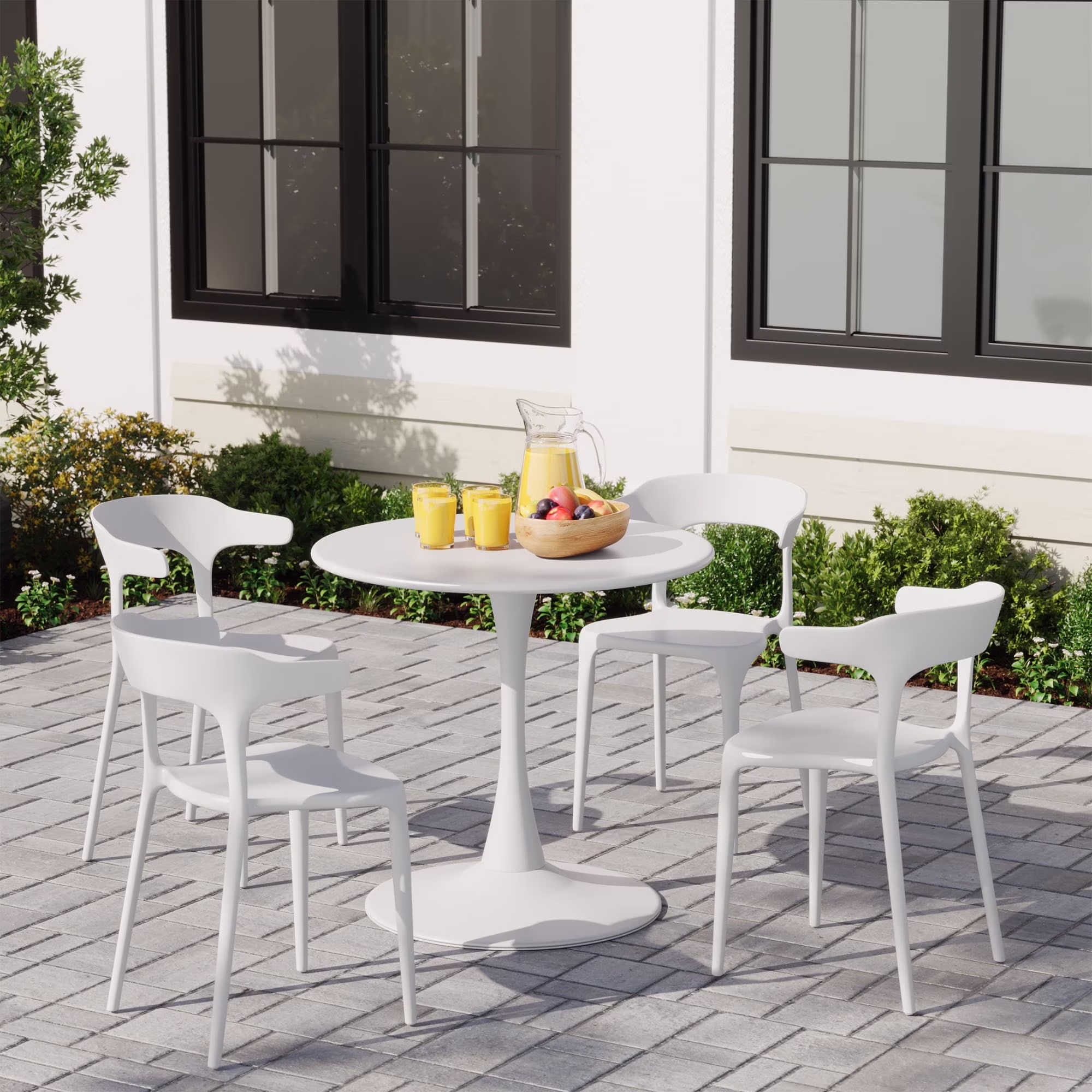 WestinTrends Playa 5-Piece Outdoor Metal Patio Dining Table Set With Stackable Patio Chairs, White