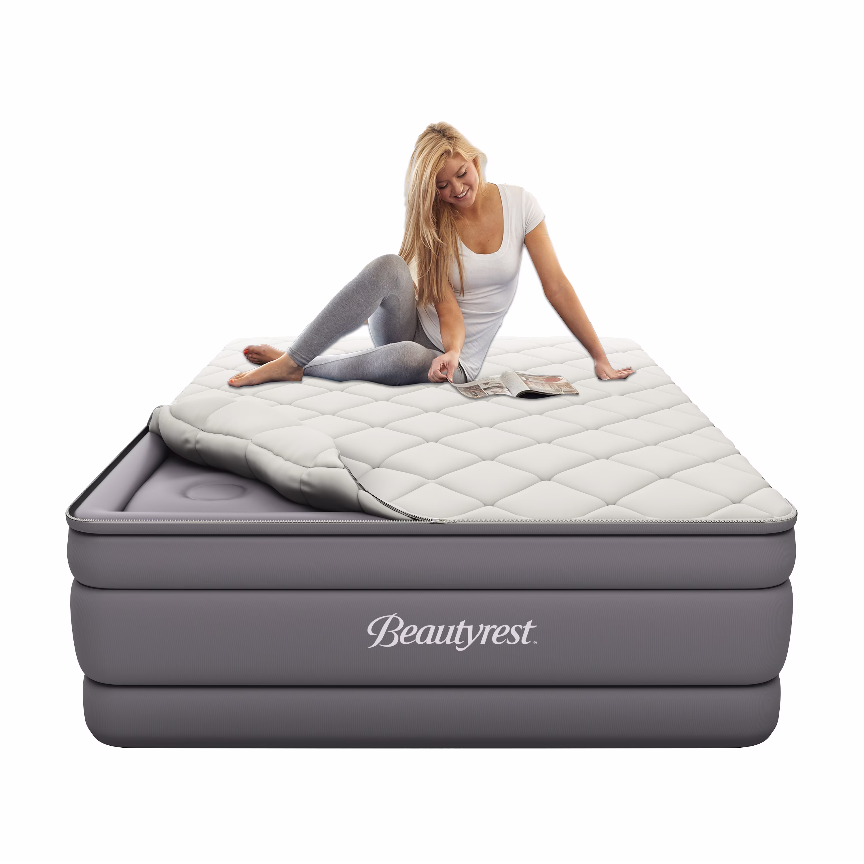 Beautyrest 20" Cushion Aire Queen Quilted Pillow Top Cover Air Bed Mattress with Built-in Pump