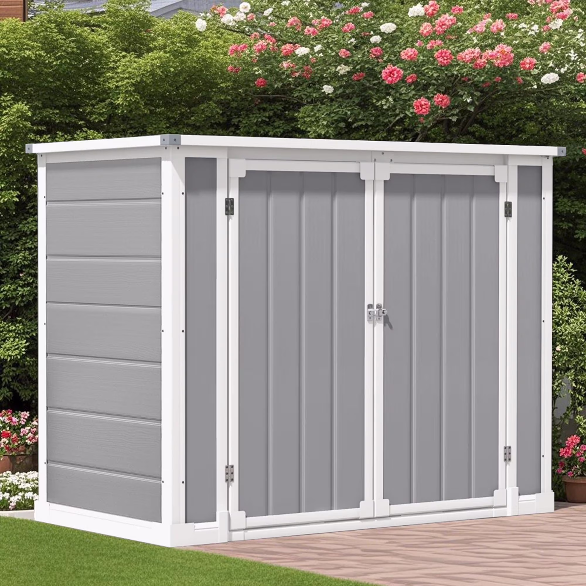 Seizeen Shed and Outdoor Storage, 41 Cu.Ft Small Outdoor Resin Shed with 3 Doors & Floor, 306GAL Deck Box Waterproof Plastic Tool Storage Shed for Cushion Lawn Mower Garbage Cans