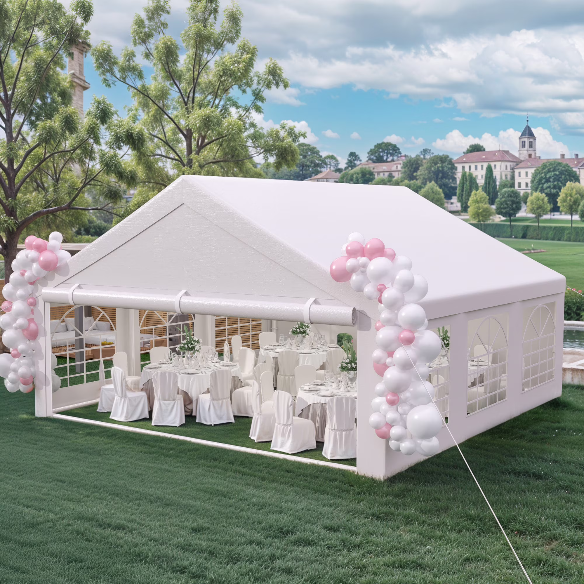 Dextrus 20x20ft Party Tent Heavy Duty with 4 Removable Sidewalls & 3 Storage Bags, Commercial Wedding Large Tent, Waterproof, White