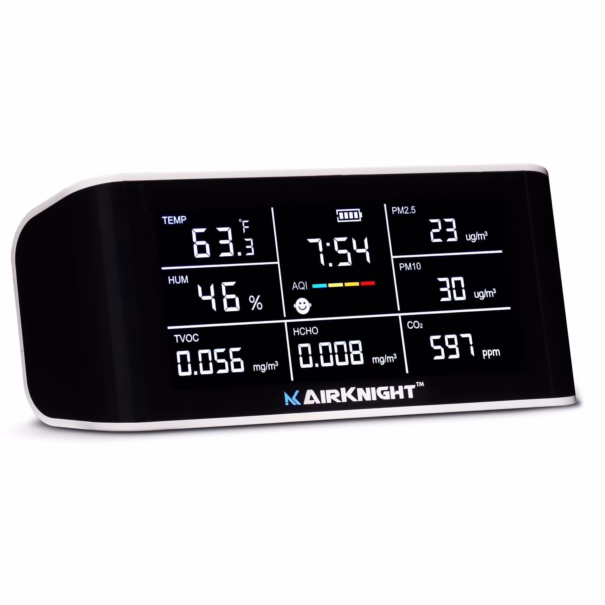 AIRKNIGHT 9-In-1 Indoor Air Quality Monitor Indoor Portable CO2 Monitor, VOC Sensor, Formaldehyde Detector, AQI, PM2.5 + 4 More Home Monitoring, Air Quality Tester – Confined Space Clean Air Monitor