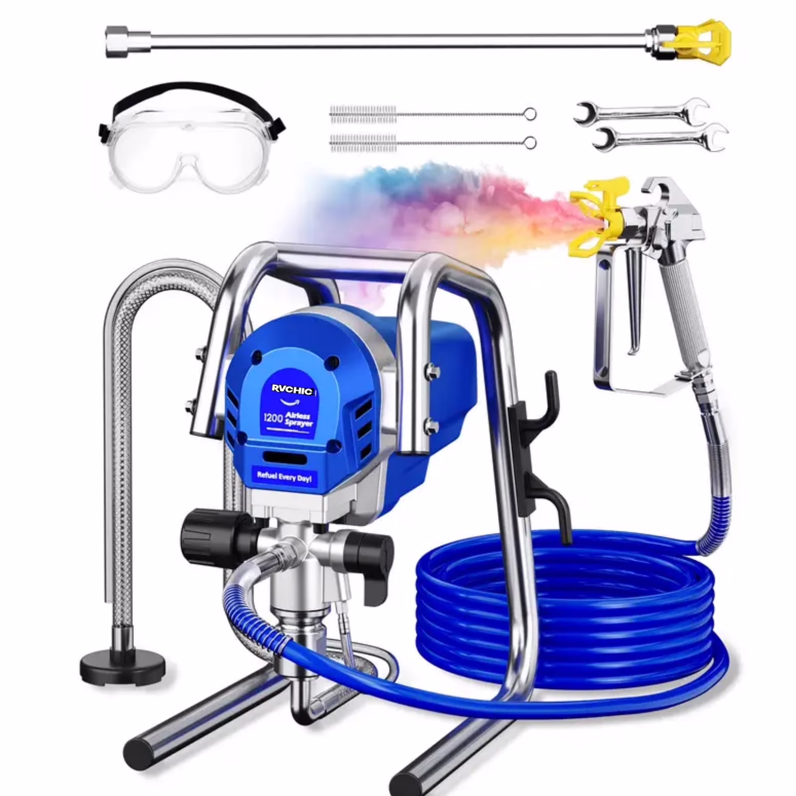 Rvchic 1200W 3300PSI Electric Airless Paint Sprayer with Extension Rod, Thinning-Free Stand Sprayer for Home Exterior/Interior,Garage,Furniture Blue