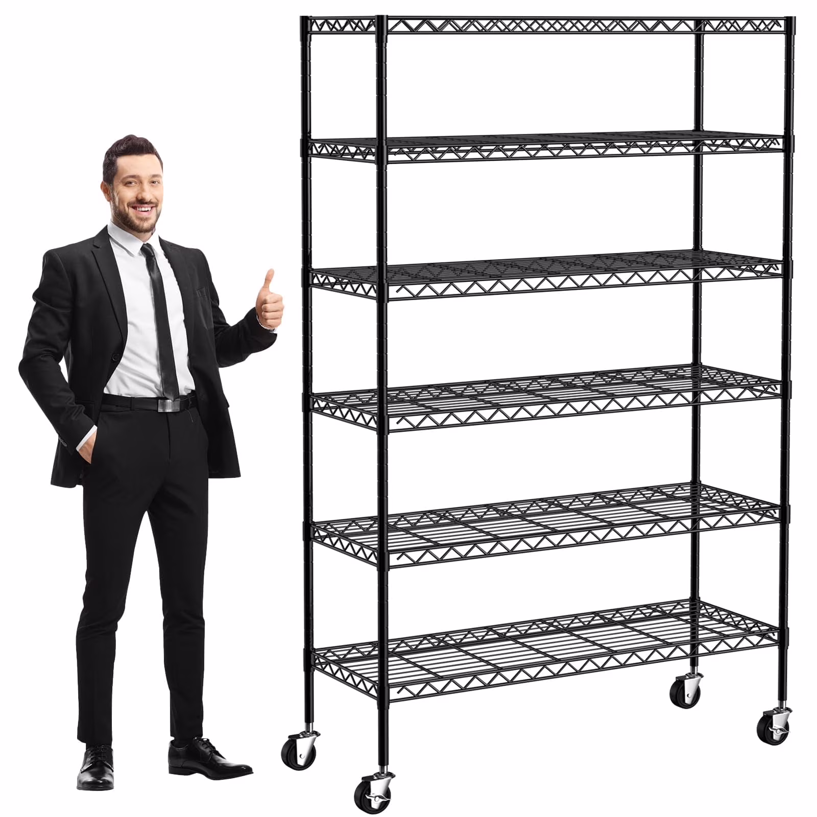 NiamVelo Black Adjustable 6-Tier Wire Shelving Unit