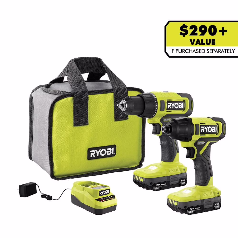 ONE+ 18V Cordless 2-Tool Combo Kit with Drill/Driver, Impact Driver, (2) 1.5 Ah Batteries, and Charger