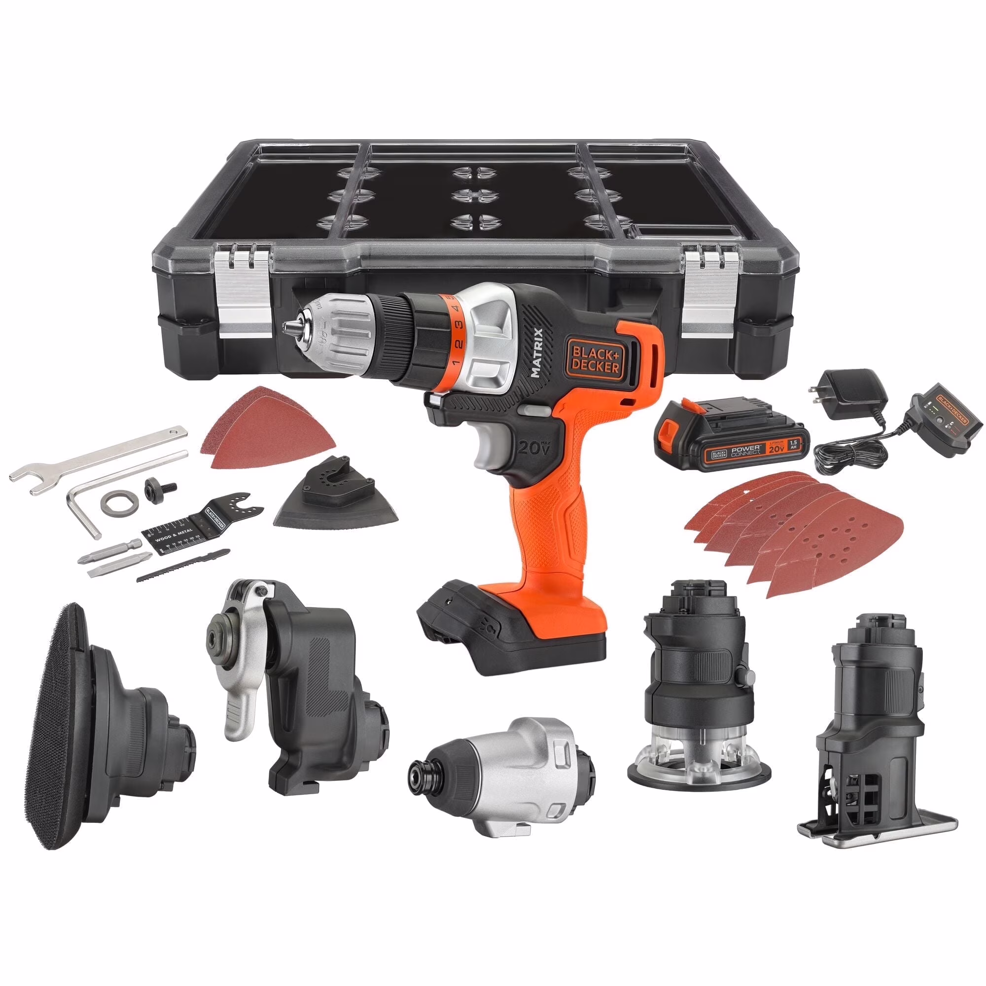 BLACK+DECKER 20V Cordless Drill, Power Tool Set, 1.5Ah, 6 Piece Set, Battery Included