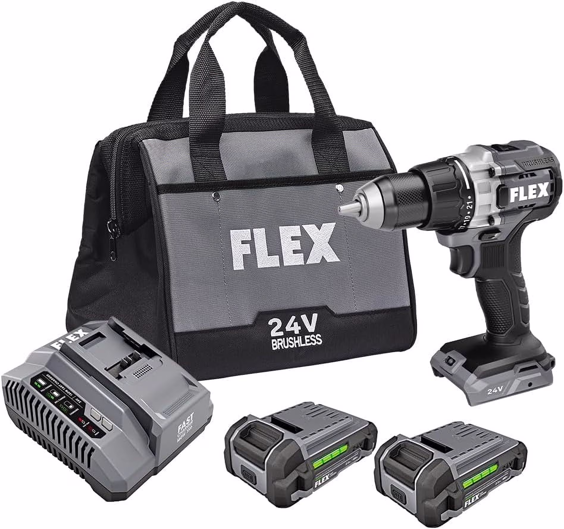 FLEX FX1151-2A 1/2" 2 SPEED 24V DRILL DRIVER KIT 2 2.5AH BATTERIES W/ CHARGER + BAG